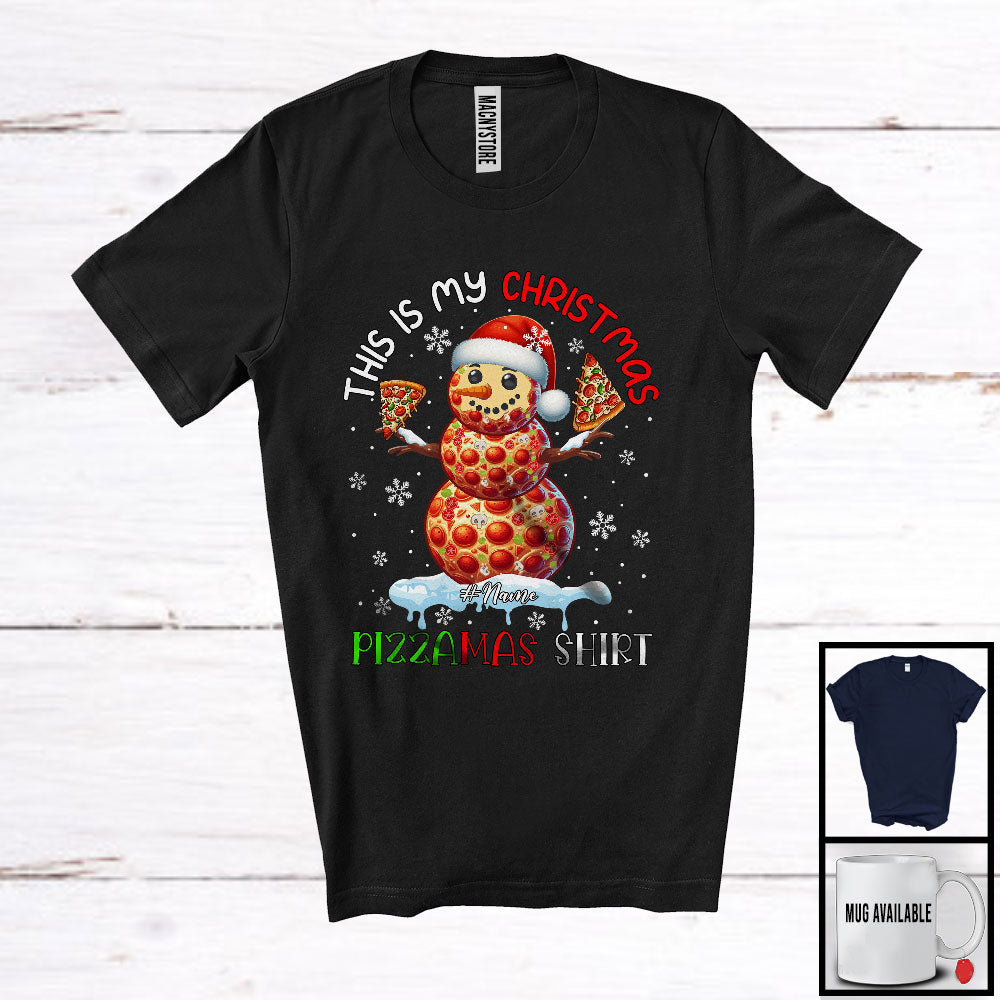 Personalized My Christmas Pizzamas Shirt; Lovely Custom Name Santa Pizza Snowman; Baker T-Shirt