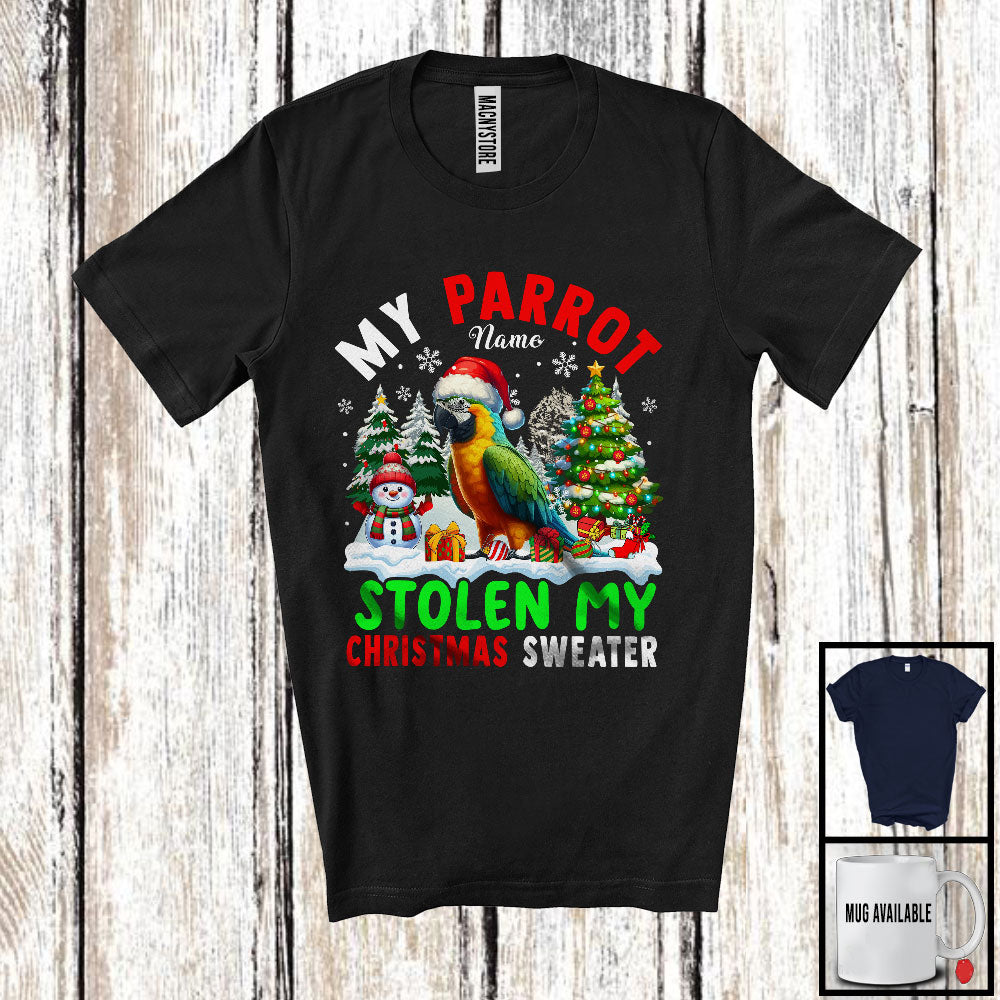 Personalized My Parrot Stolen My Christmas Sweater; Lovely Custom Name Bird T-Shirt. This cotton t-shirt is a durable staple product with a classic fit. One of the most popular items, it has a relaxed style made for everyday and casual wear.