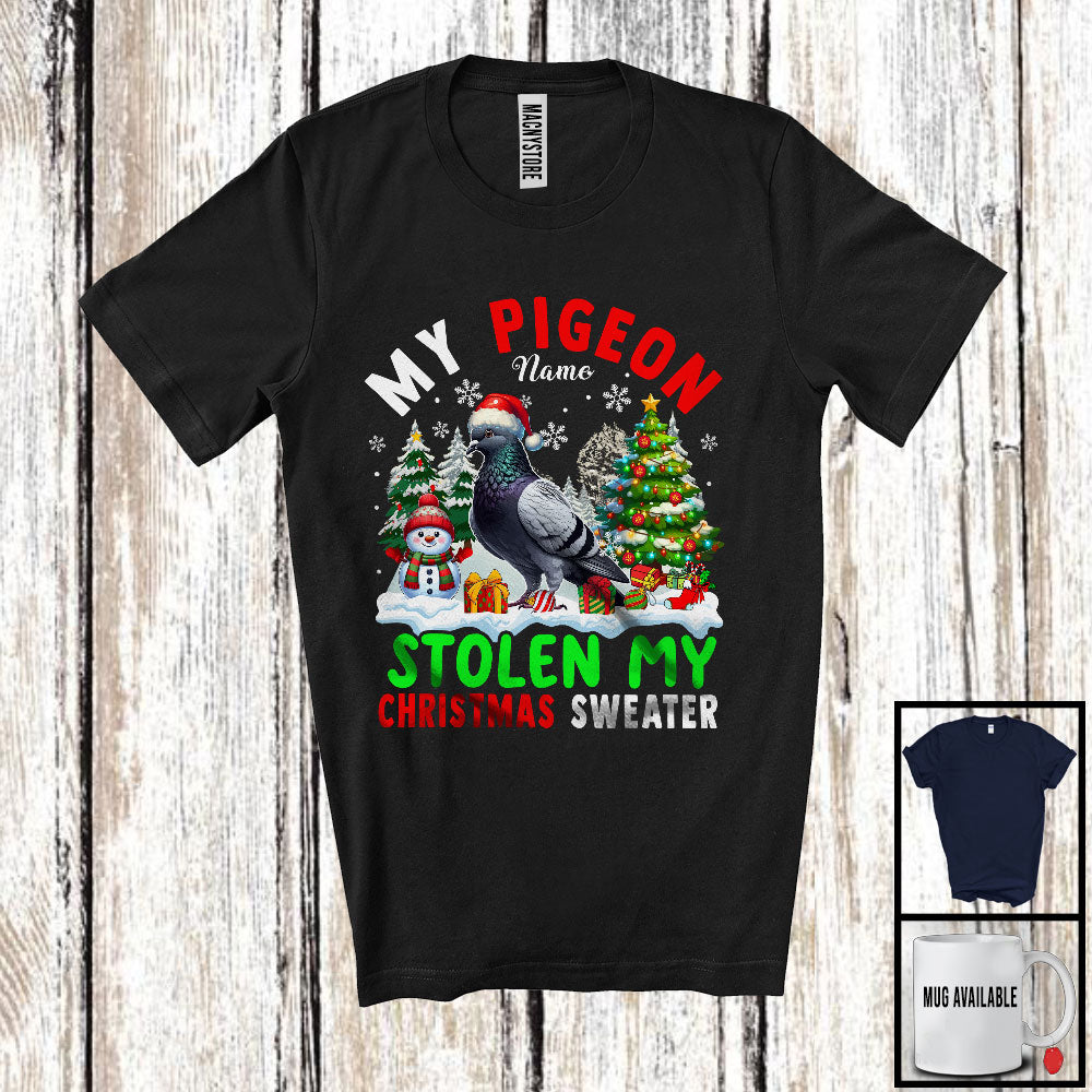 Personalized My Pigeon Stolen My Christmas Sweater; Lovely Custom Name Bird T-Shirt. This cotton t-shirt is a durable staple product with a classic fit. One of the most popular items, it has a relaxed style made for everyday and casual wear.