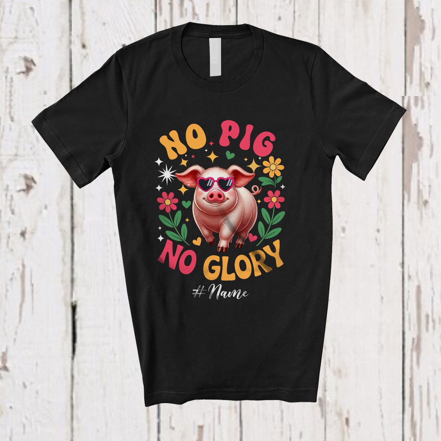 Personalized No Pig No Glory; Lovely Farm Animal Flowers; Custom Name Farmer T-Shirt