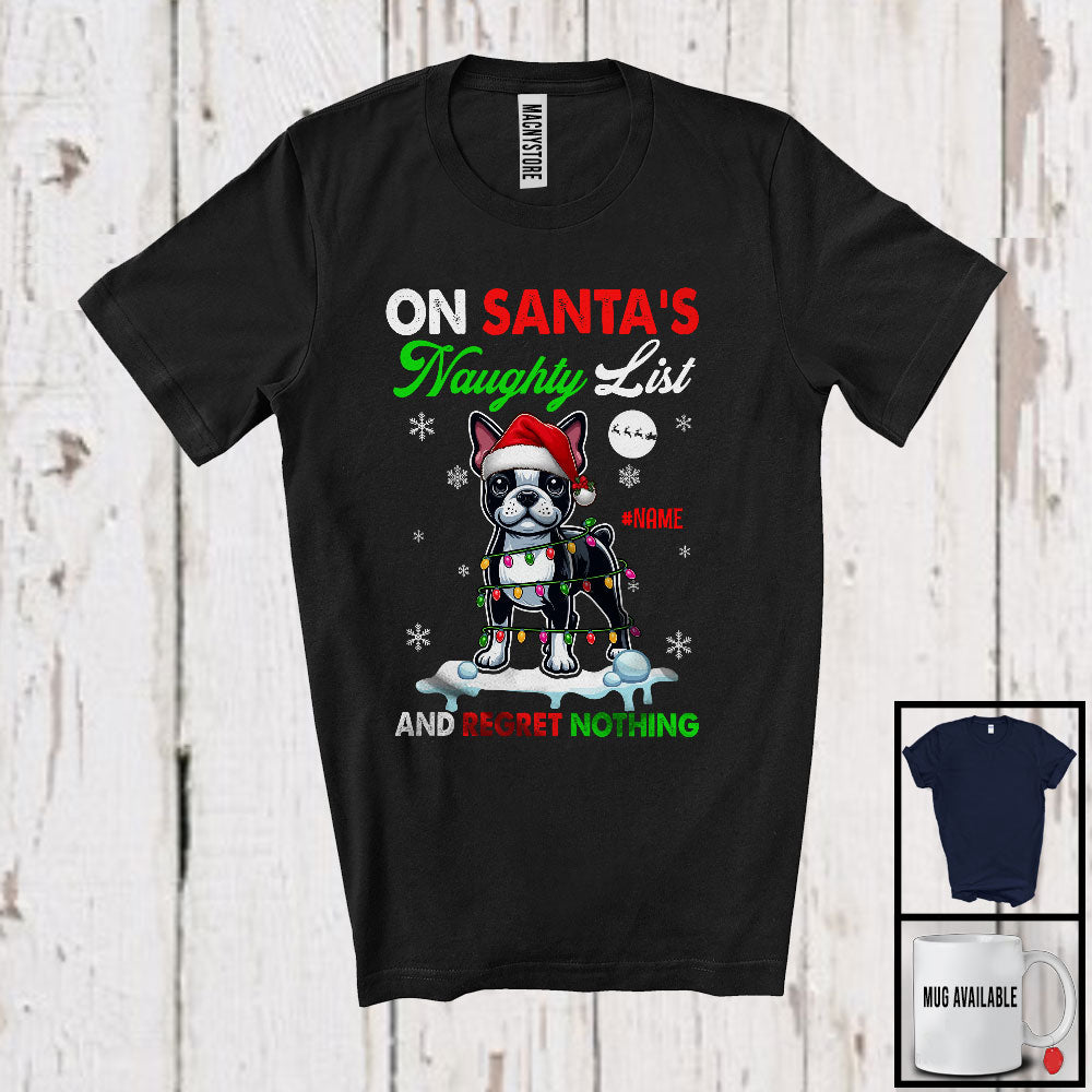 Personalized On Santa's Naughty List; Lovely Christmas Custom Name Boston Terrier Owner T-Shirt