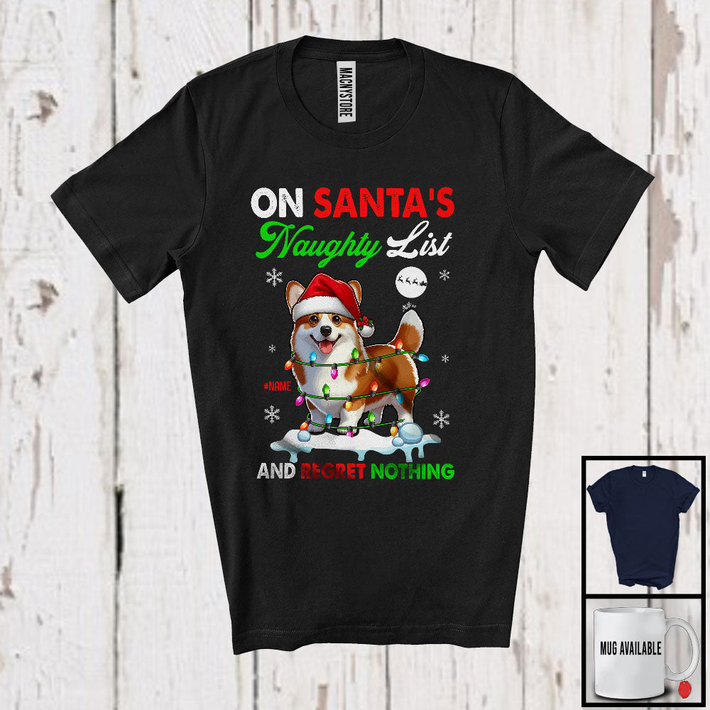 Personalized On Santa's Naughty List; Lovely Christmas Custom Name Corgi Owner T-Shirt