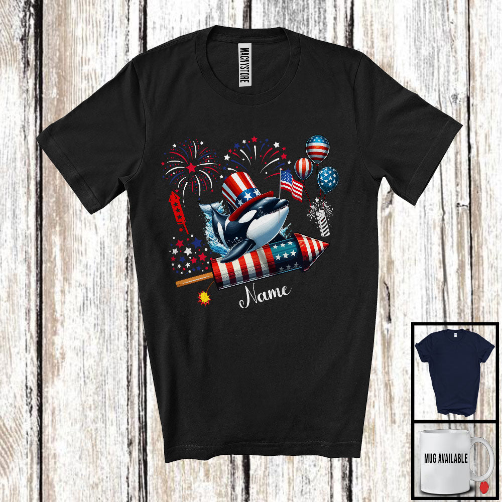 new MacnyStore - Personalized Orca Riding Firecracker, Lovely 4th Of July USA Flag Custom Name, Fish Sea Animal T-Shirt – Macnystore
