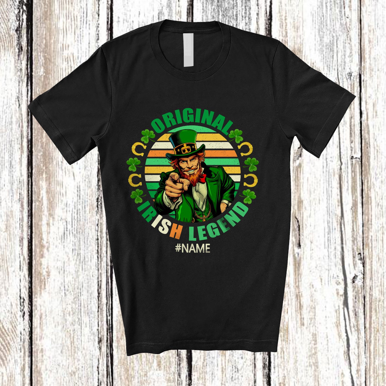 Personalized Original Irish Legend; Joyful St. Patrick's Day Custom Name Leprechaun; Shamrock T-Shirt. This cotton t-shirt is a durable staple product with a classic fit. One of the most popular items, it has a relaxed style made for everyday and casual wear.