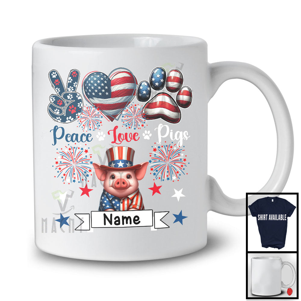 Personalized Peace Love Pigs, Awesome 4th Of July Custom Name Kitten, Patriotic T-Shirt. This cotton t-shirt is a durable staple product with a classic fit. One of the most popular items, it has a relaxed style made for everyday and casual wear.
