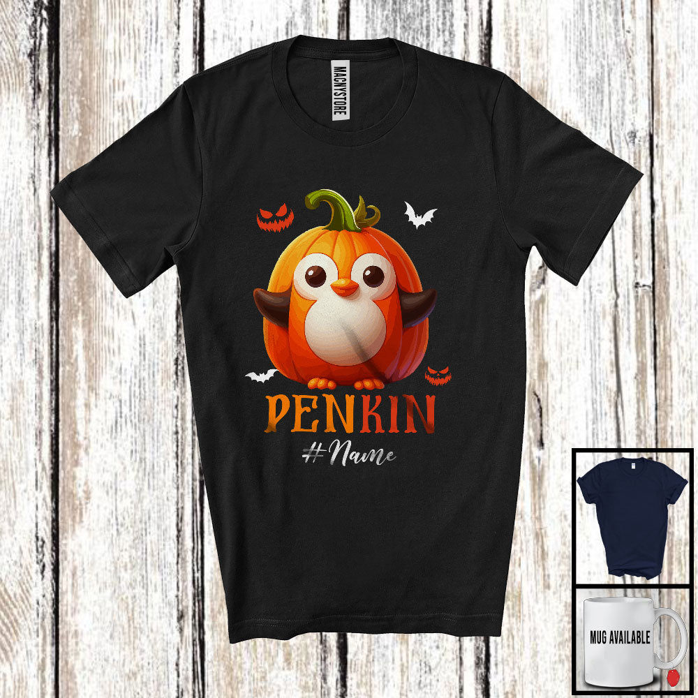 Personalized Penkin; Scary Halloween Cosplay Animal; Custom Name Penguin Pumpkin Face T-Shirt