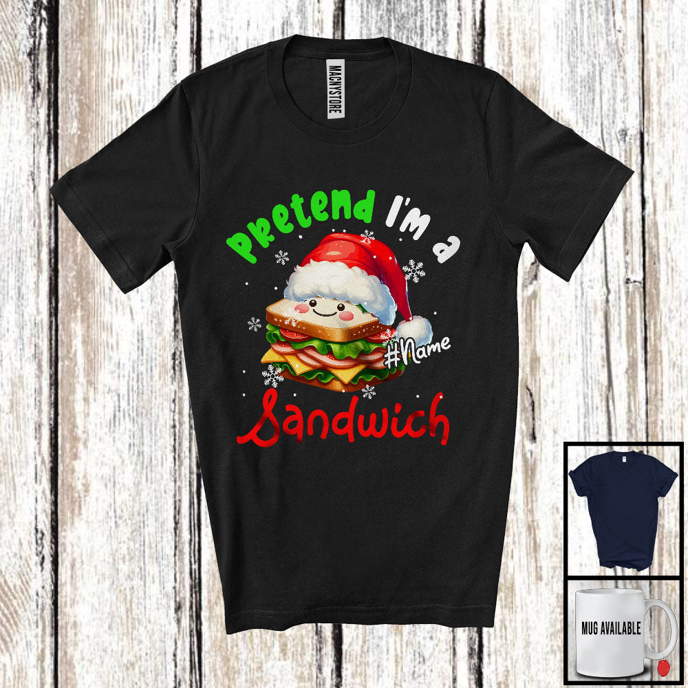 Personalized Pretend I'm A Sandwich Crew; Lovely Christmas Custom Name Santa Snowing T-Shirt