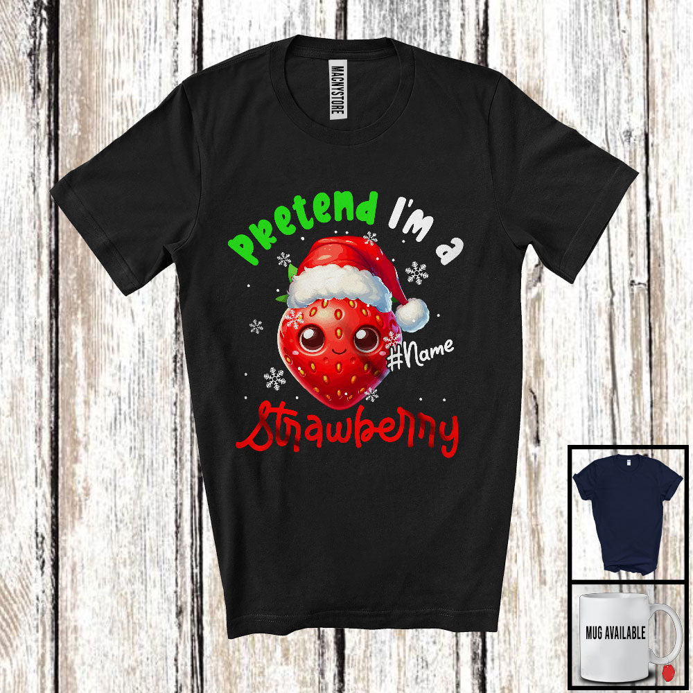 Personalized Pretend I'm A Strawberry Crew; Lovely Christmas Custom Name Santa Snowing T-Shirt