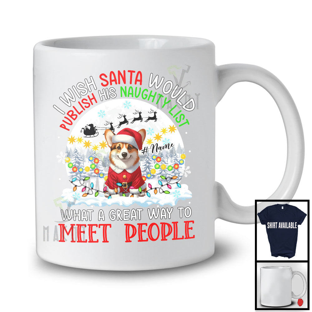 • The Personalized Publish His Naughty List; Lovely Christmas Custom Name Corgi Santa T-Shirt was built with people like you in mind. Something to keep you happy. Every. Single. Day.