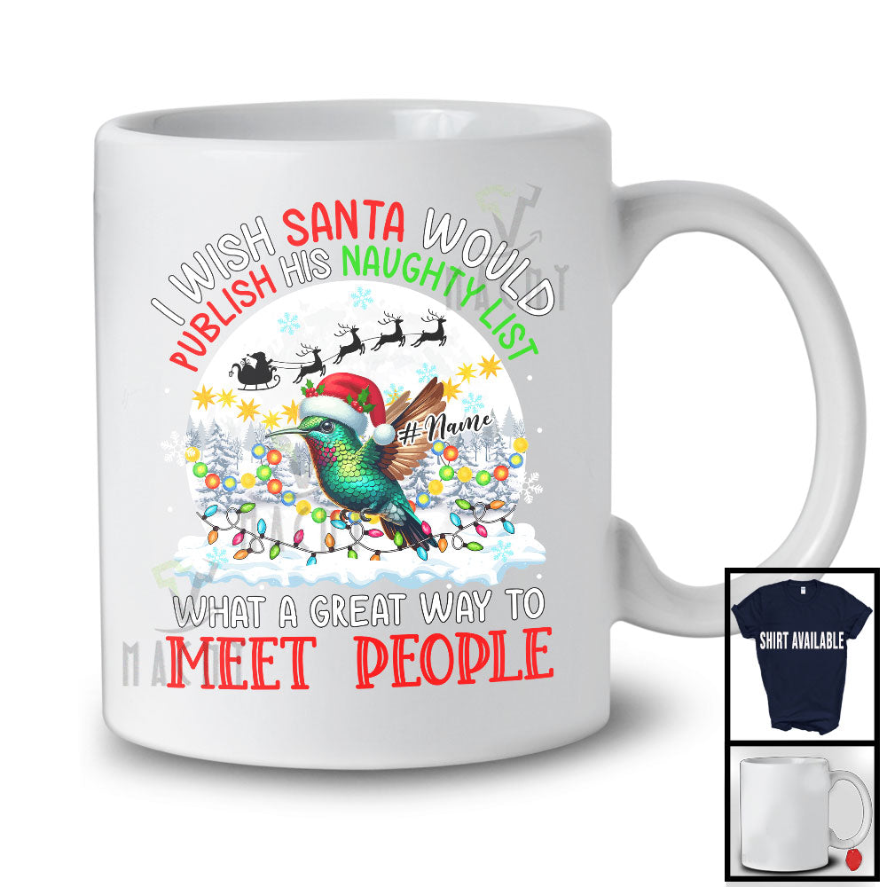 Personalized Publish His Naughty List; Lovely Christmas Custom Name Hummingbird Santa T-Shirt