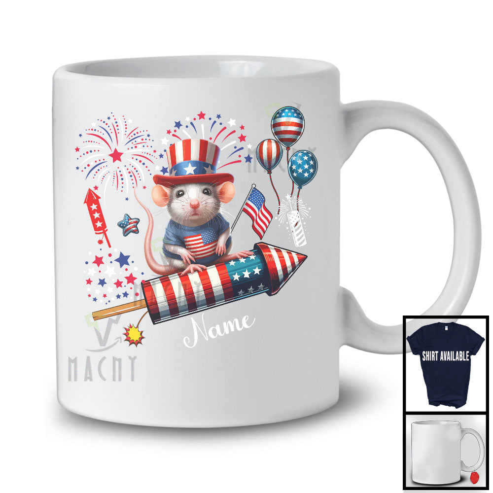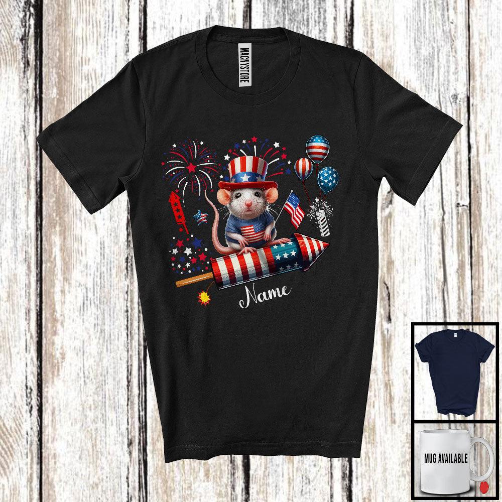 Personalized Rat Riding Firecracker, Lovely 4th Of July USA Flag Custom Name, Zoo Animal T-Shirt