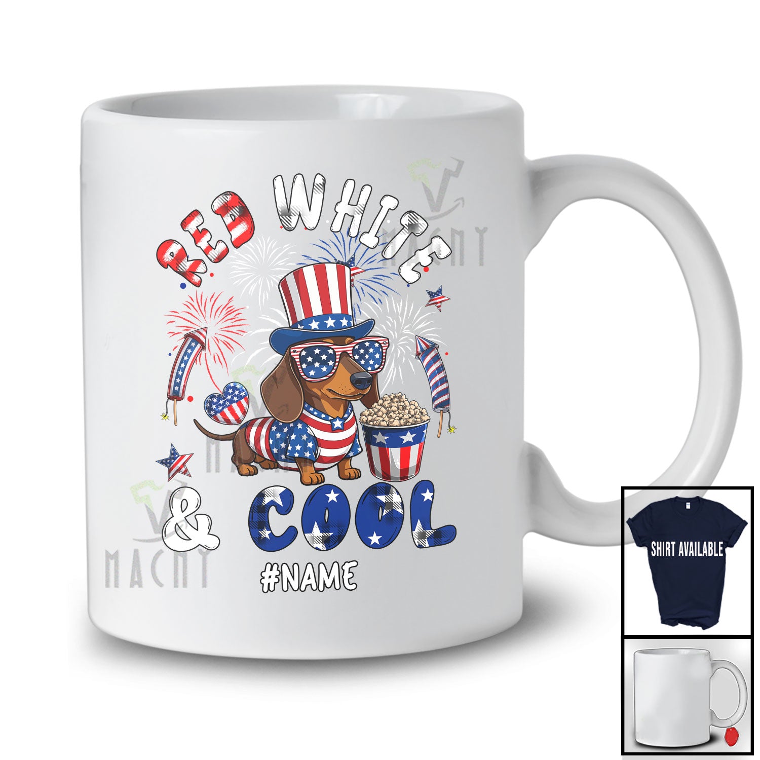 • Personalized Red White And Cool; Lovely 4th of July Custom Name Dachshund Patriotic T-Shirt. This cotton t-shirt is a durable staple product with a classic fit. One of the most popular items, it has a relaxed style made for everyday and casual wear.