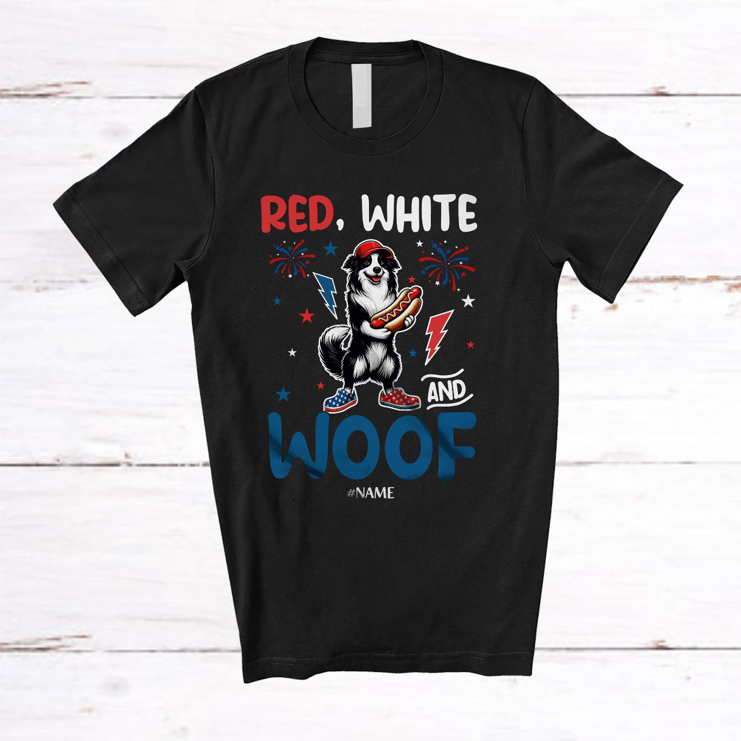 Personalized Red White And Woof; Lovely 4th Of July Custom Name Border Collie Hot Dog; Patriotic T-Shirt