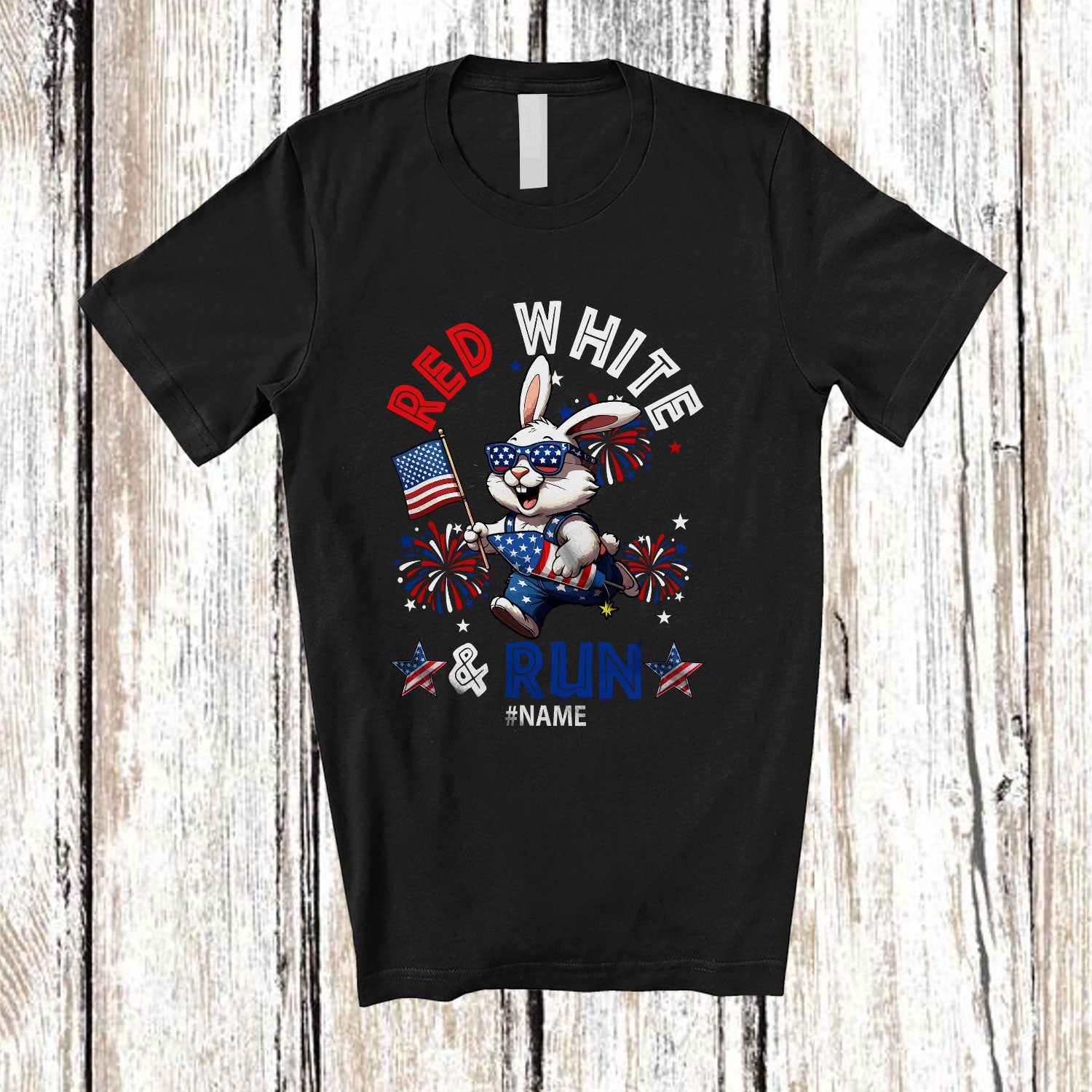 Personalized Red White Run; Awesome 4th Of July Running Bunny Runner; Custom Name Patriotic T-Shirt