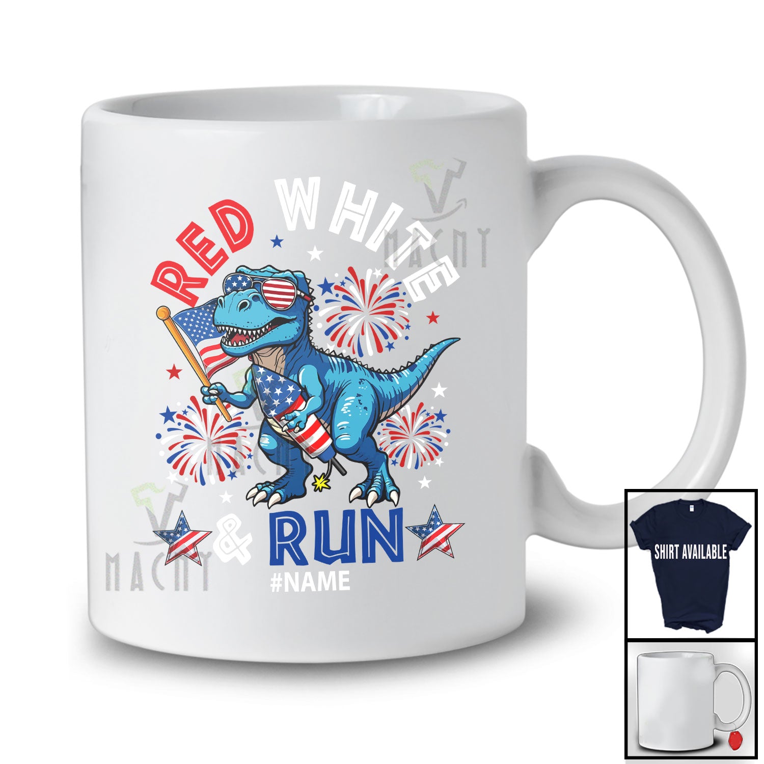 Personalized Red White Run; Awesome 4th Of July Running Dinosaur T-Rex; Custom Name Patriotic T-Shirt