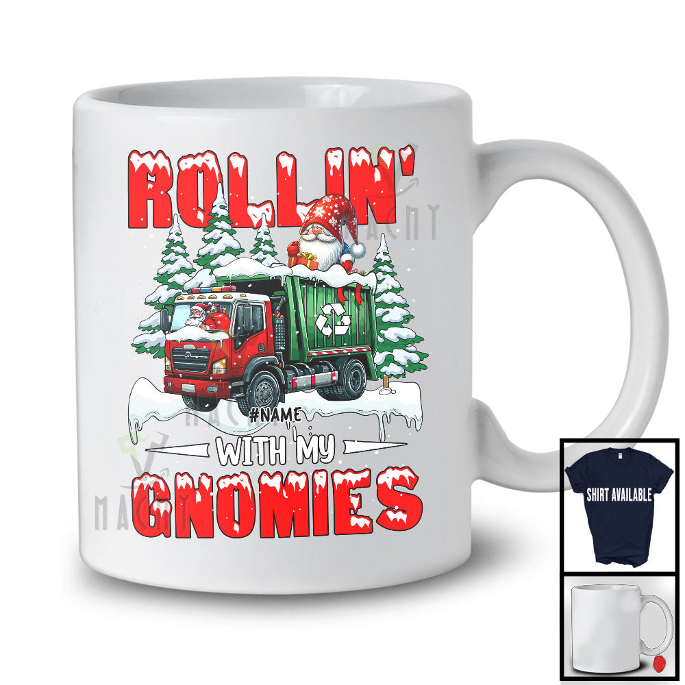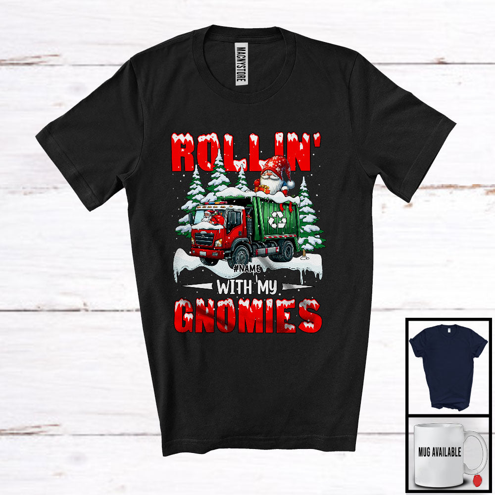 Personalized Rollin' With My Gnomies; Fantastic Christmas Snowing; Custom Name Gnome Garbage Truck T-Shirt