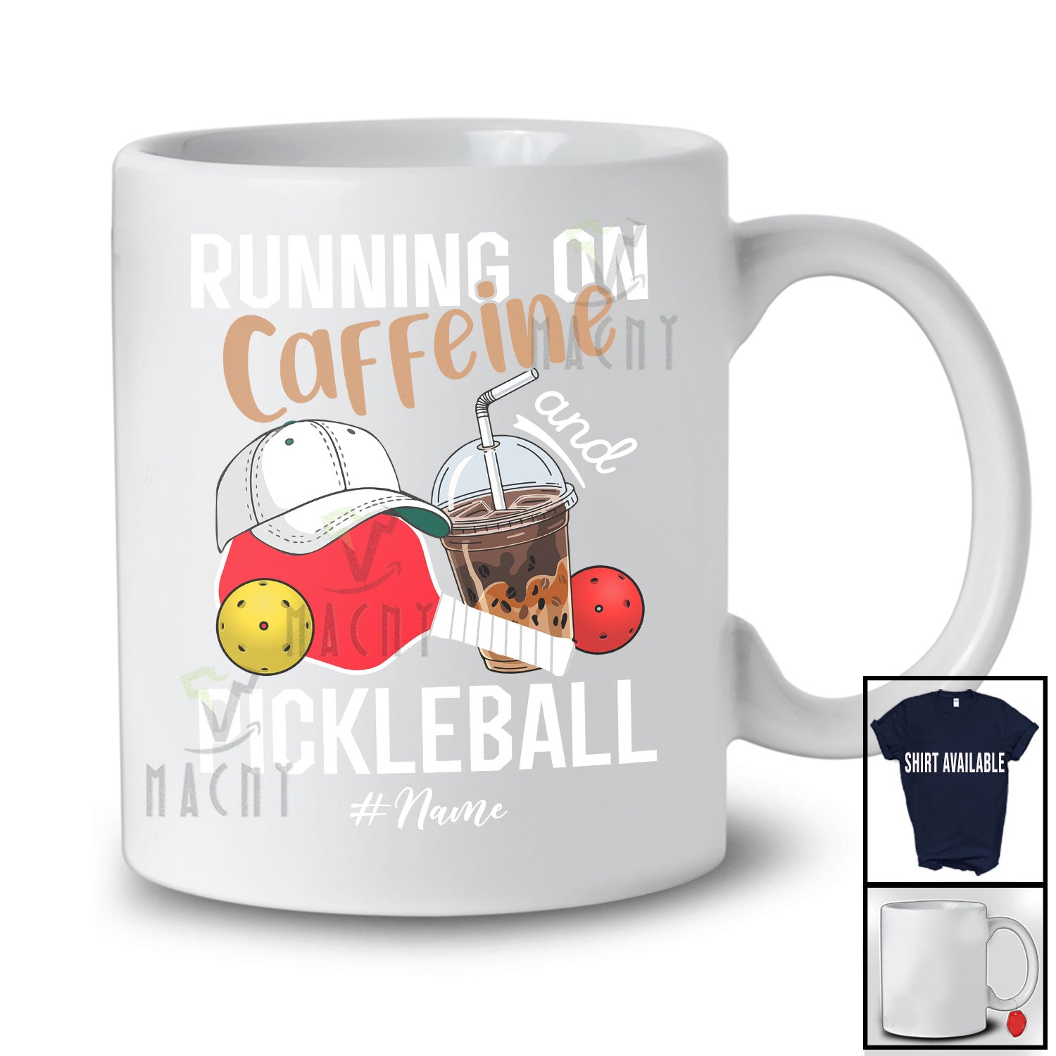 Personalized Running On Caffeine And Pickleballs; Joyful Custom Name Coffee Pickleballs Player T-Shirt