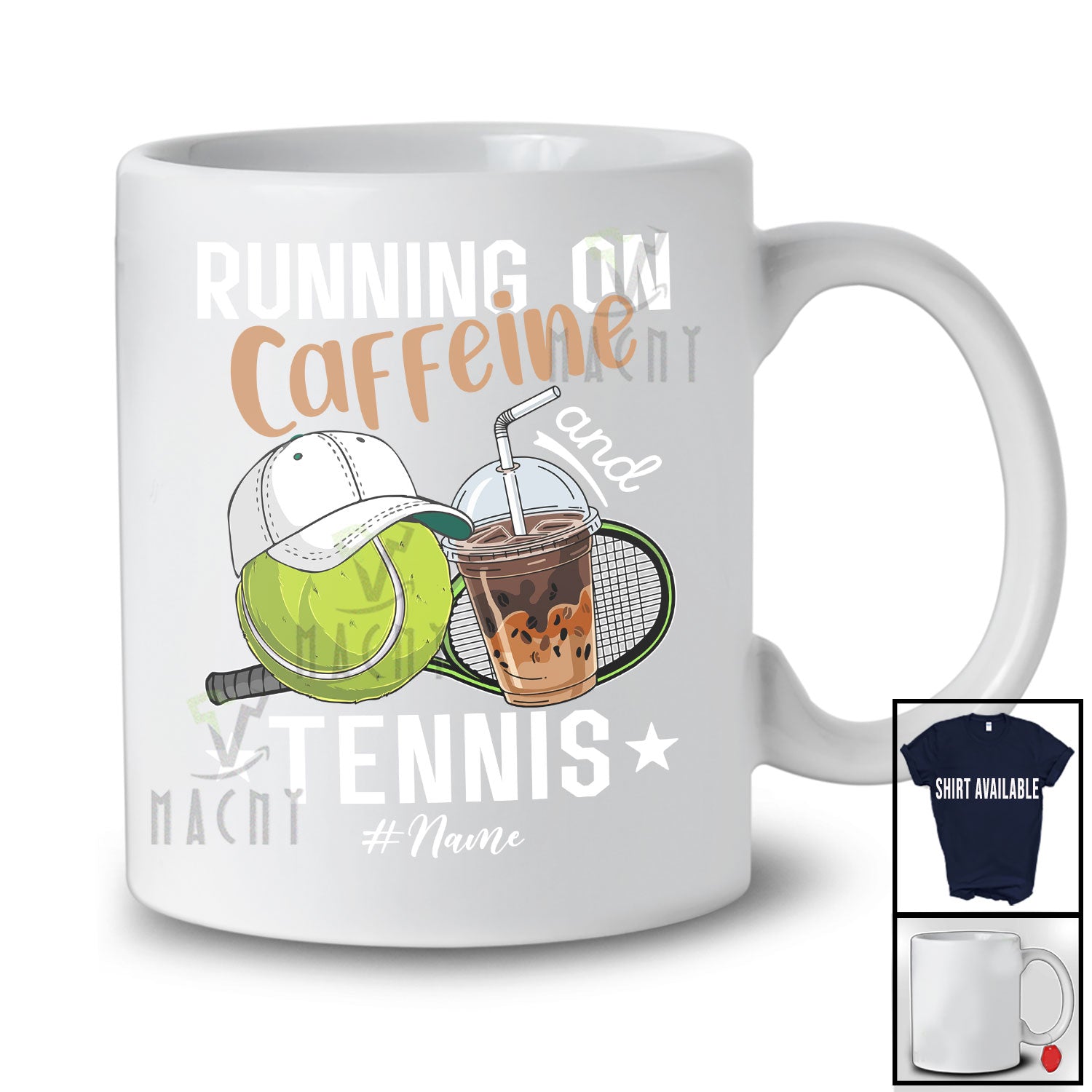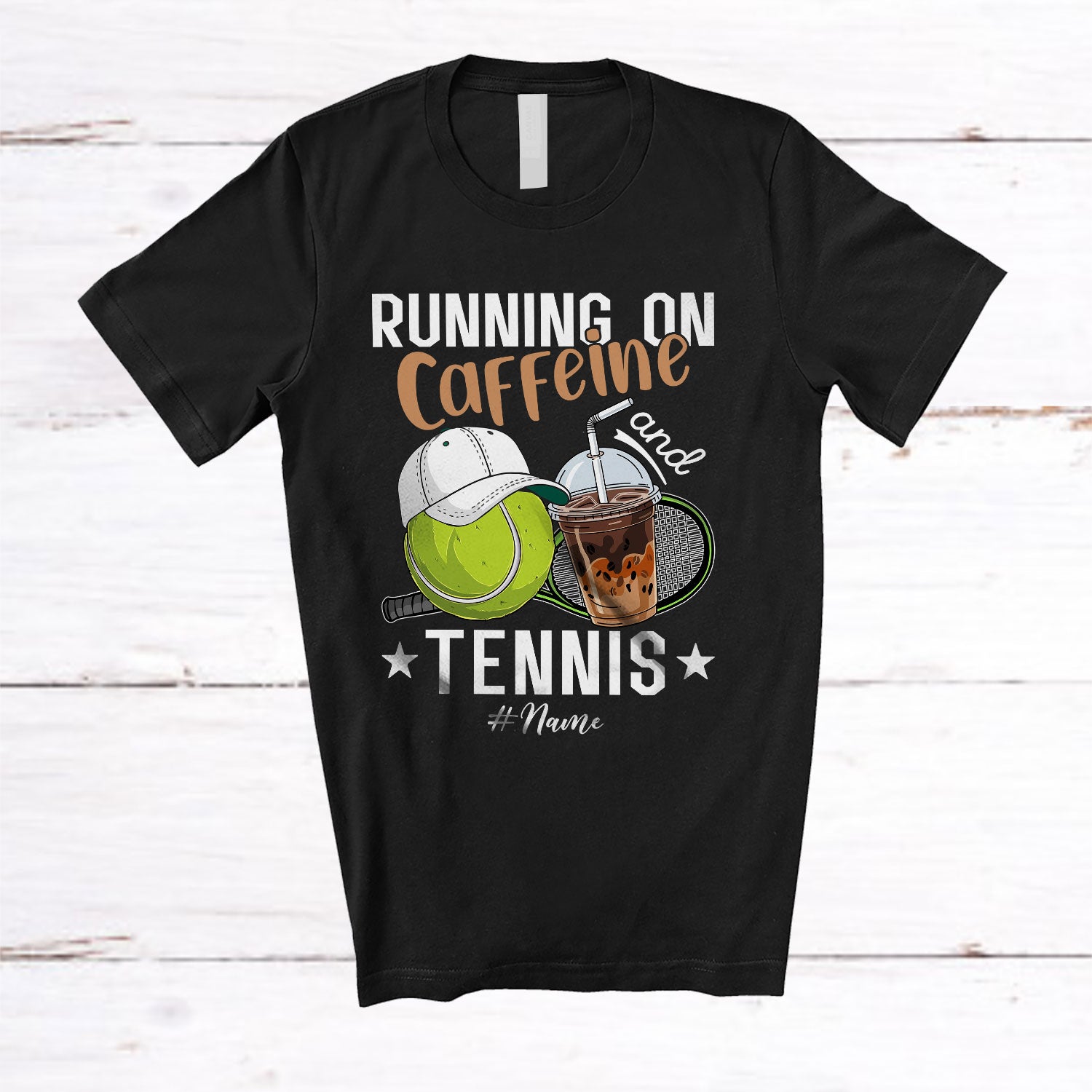 Personalized Running On Caffeine And Tennis; Joyful Custom Name Coffee Tennis Player T-Shirt