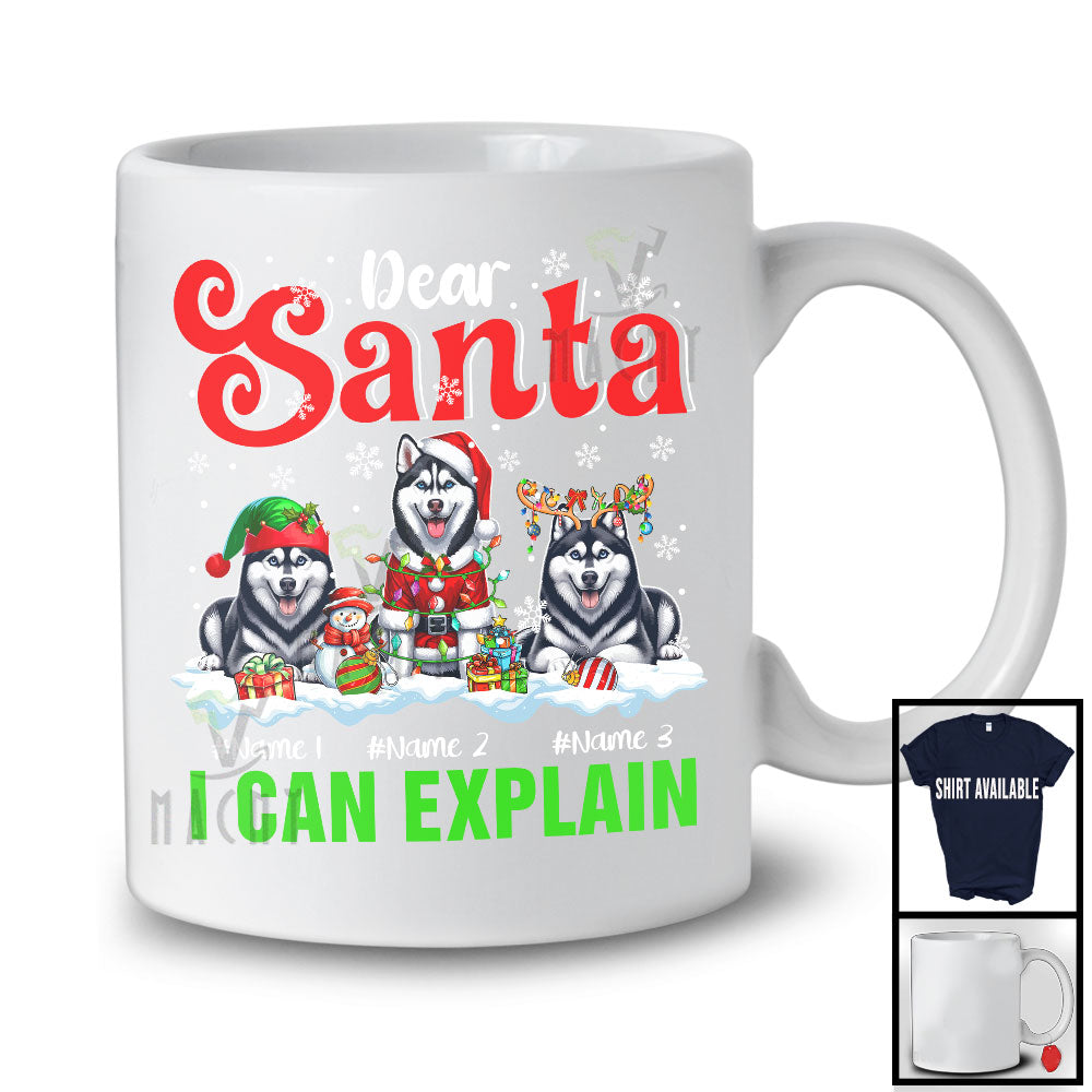 This Personalized Santa I Can Explain; Merry Christmas Custom Name Three Huskies; Snowing T-Shirt is great idea gift for your family, friends in this birthday, christmas, mother's day, father's day, patrick's day or any holiday.