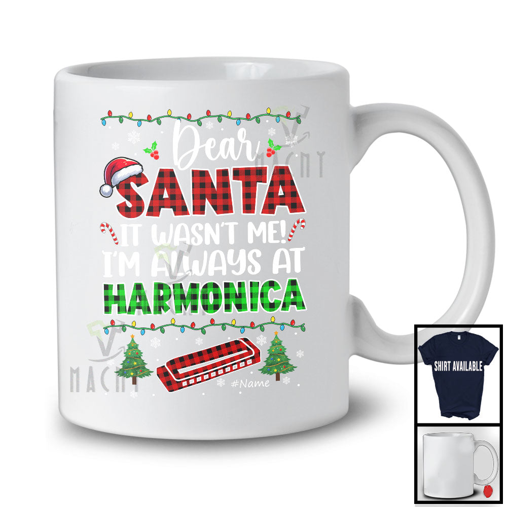 • Every product is unique, just like you. If you're looking for a product that fits the mold of your life, the Personalized Santa It Wasn't Me Harmonica; Joyful Christmas Plaid; Custom Name Musical Instruments T-Shirt is for you.