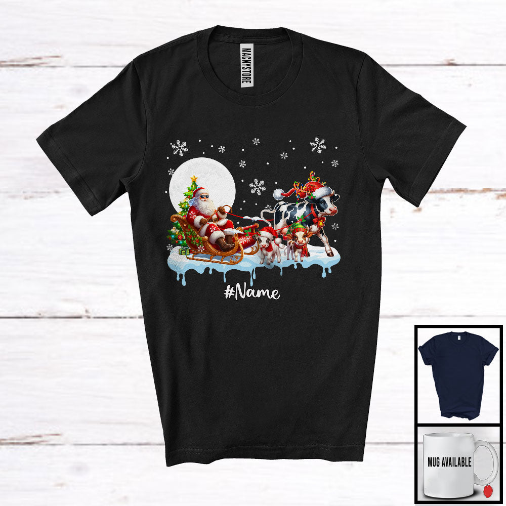 The Personalized Santa Sleigh Cow With Baby Cows; Wonderful Christmas Moon; Custom Name Farmer T-Shirt destined to impress, and priced at only $12.95, for a limited time.