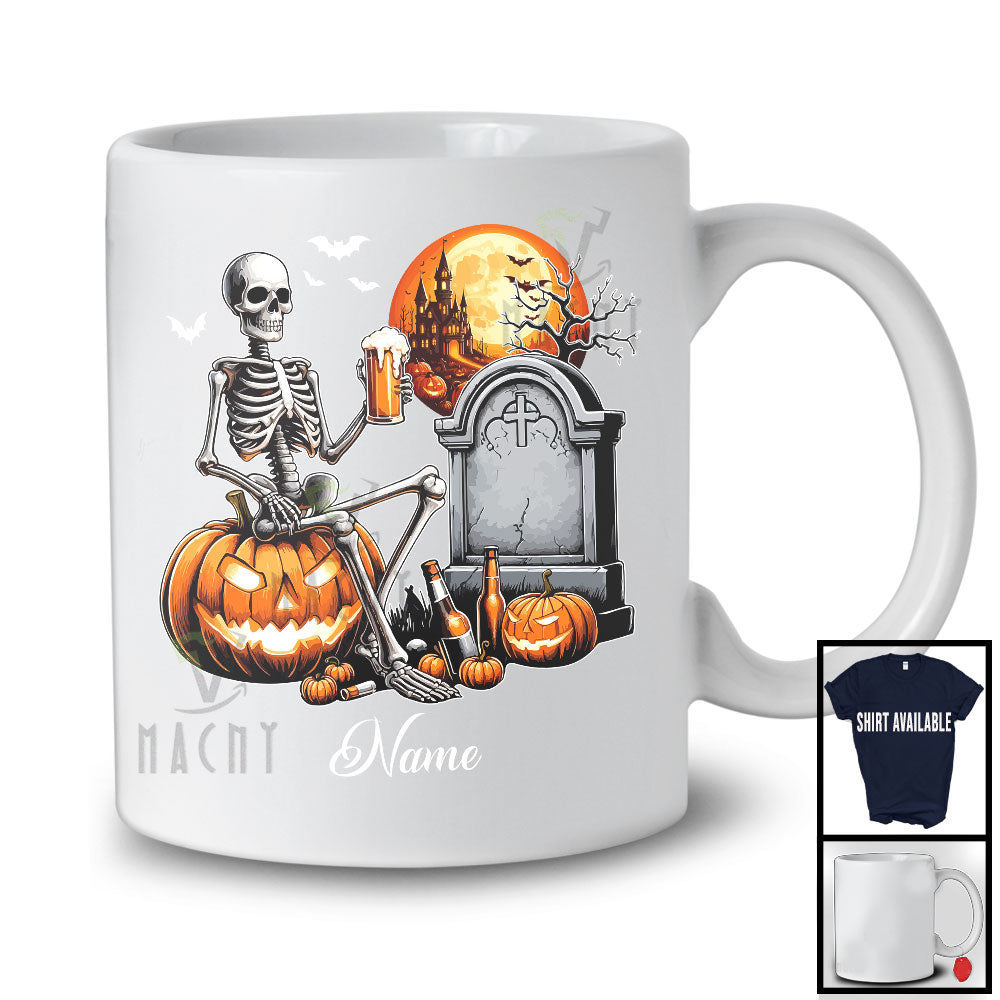 The Personalized Skeleton Drinking Beer On Pumpkin; Horror Halloween Custom Name Drunker T-Shirt is the yin, to your yang. You've found what you're looking for.