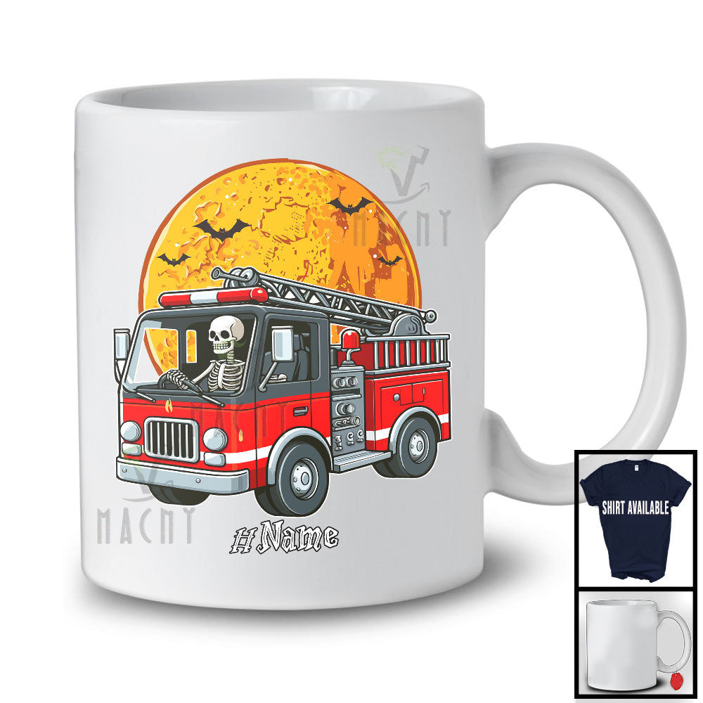 new MacnyStore - Personalized Skeleton Driving Firetruck, Scary Halloween Custom Name Firetruck Driver Lover T-Shirt – Macnystore