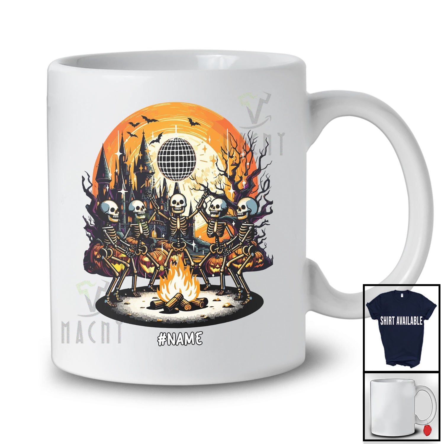 Personalized Skeletons Dancing Skeletons; Joyful Halloween Custom Name Dancer Camping Fire T-Shirt. This cotton t-shirt is a durable staple product with a classic fit. One of the most popular items, it has a relaxed style made for everyday and casual wear.
