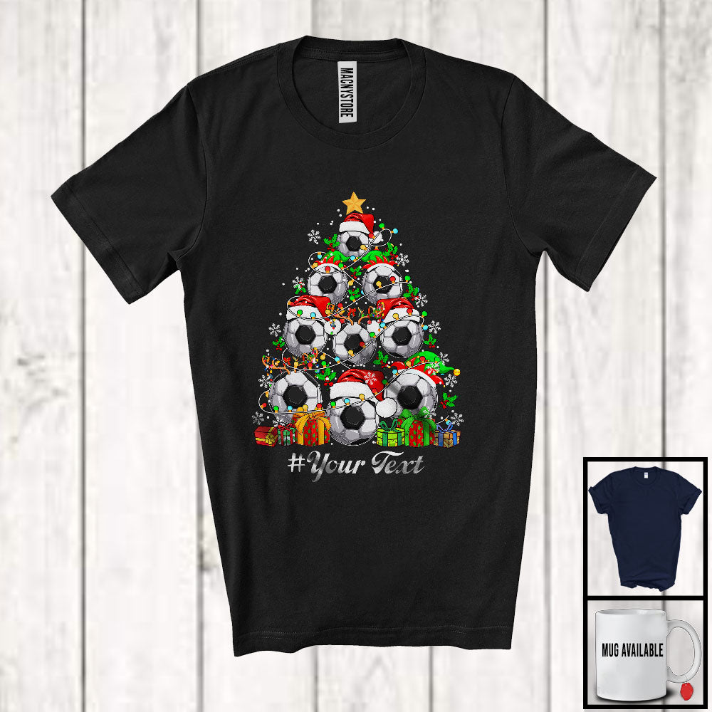 Personalized Soccer Equipment Christmas Tree; Merry X-mas Custom Text Sport Player T-Shirt