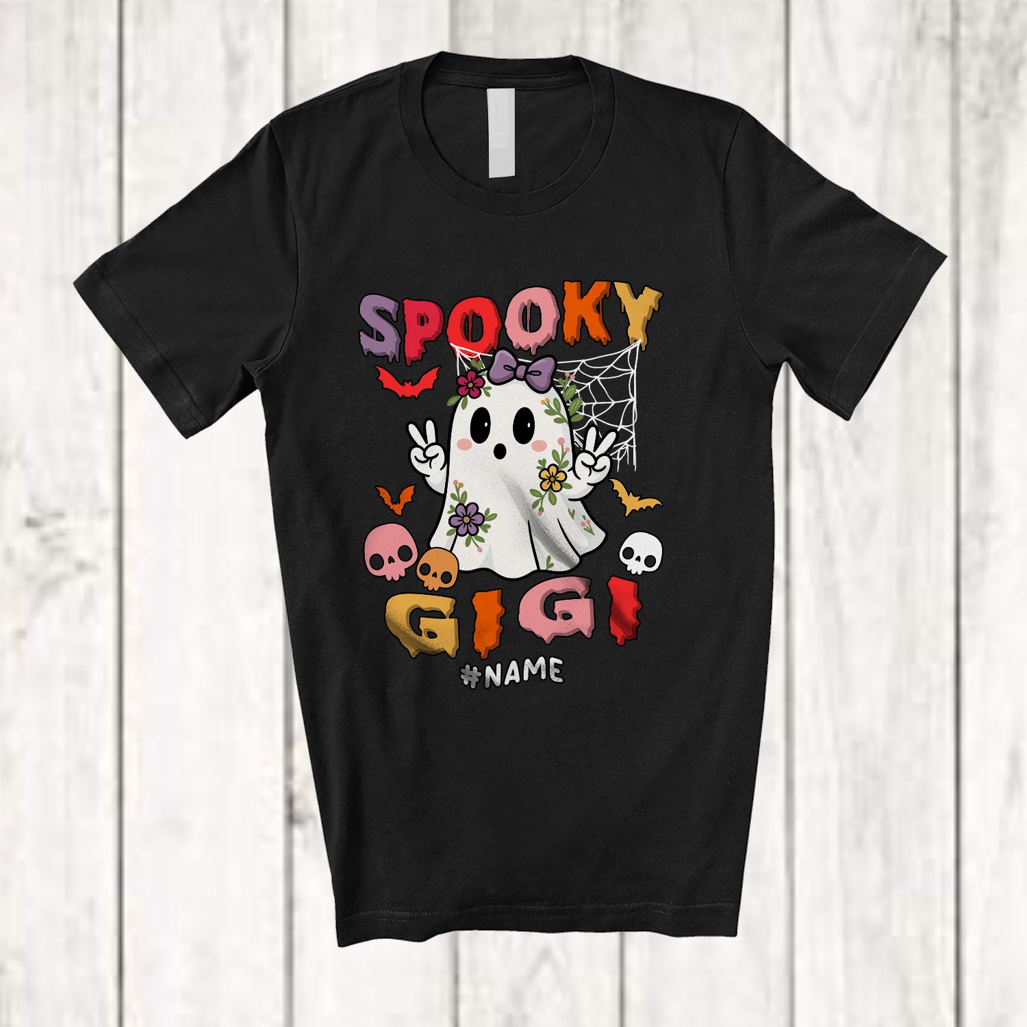 Personalized Spooky Gigi; Awesome Halloween Flowers Boo Ghost Groovy; Custom Name Family T-Shirt