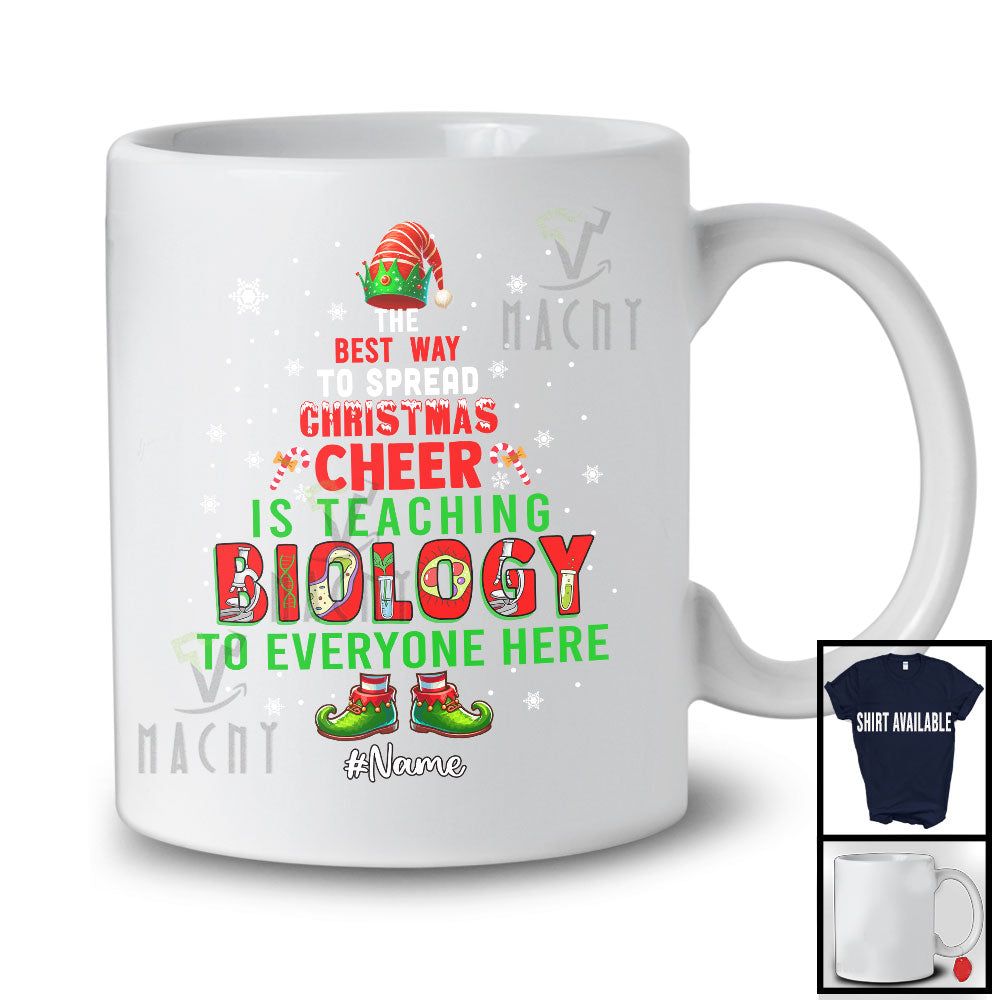 Personalized Spread Christmas Cheer Is Teaching Biology; Joyful Custom Name Biology Teacher T-Shirt
