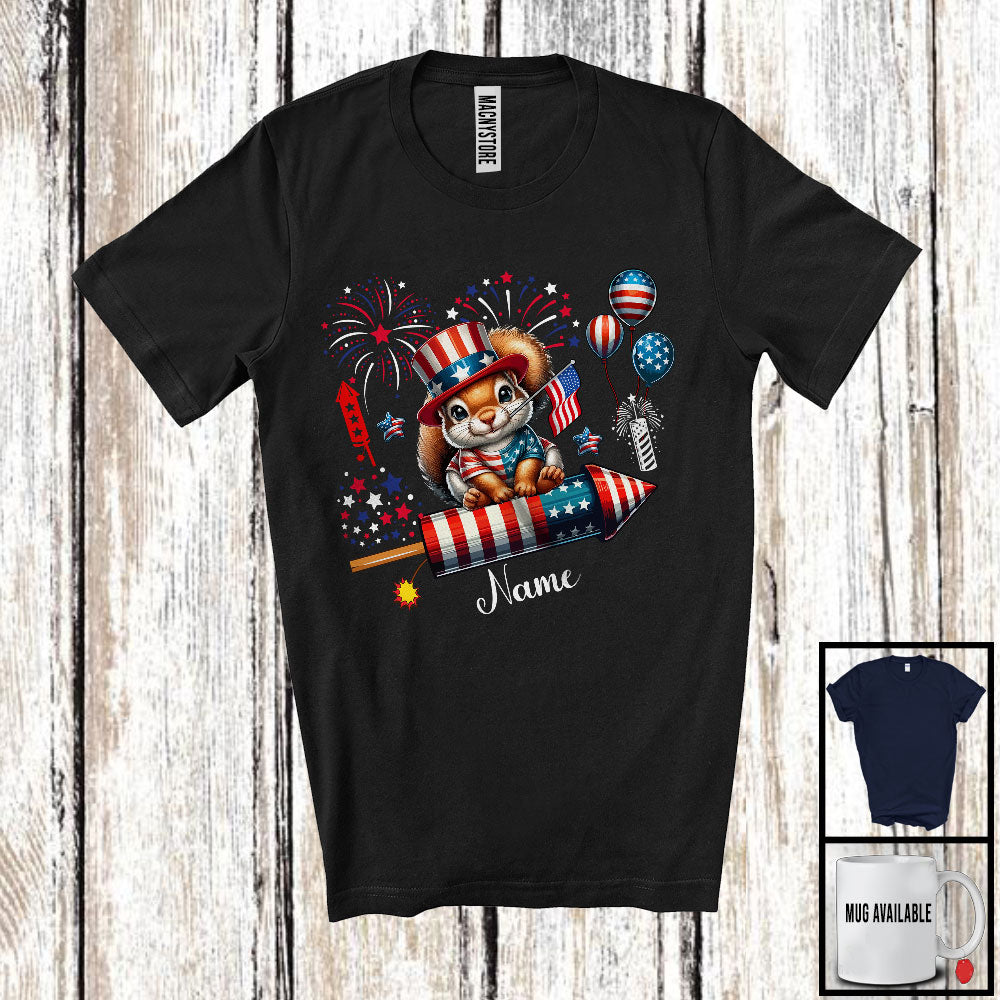 Personalized Squirrel Riding Firecracker, Lovely 4th Of July USA Flag Custom Name, Zoo Animal T-Shirt