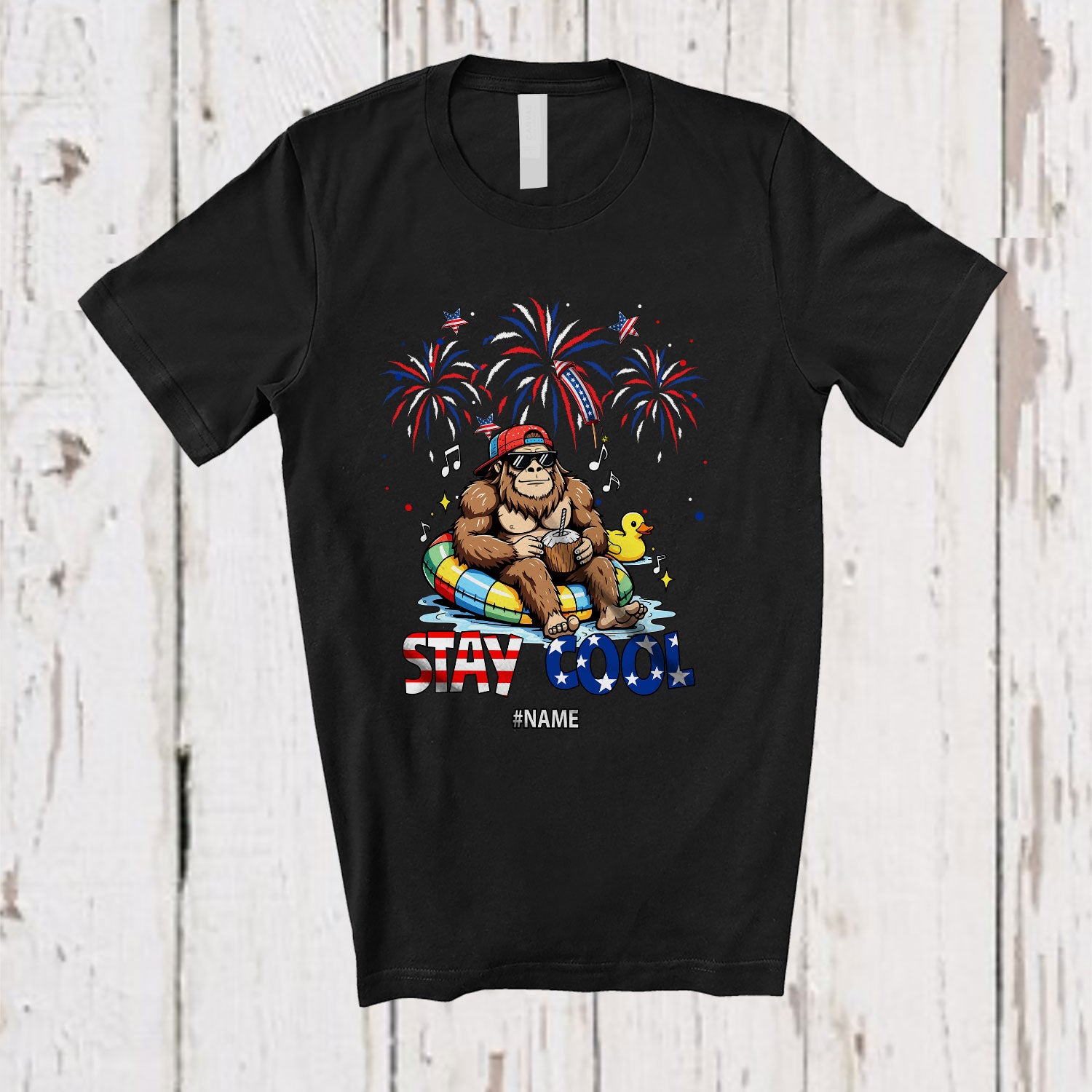 Personalized Stay Cool; Proud 4th Of July Custom Name Bigfoot Sunglasses at Beach; Patriotic T-Shirt