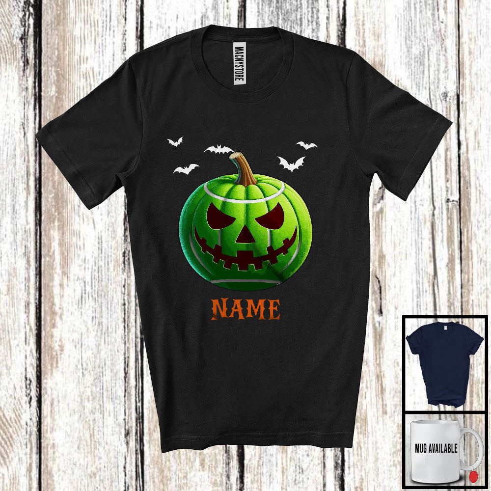 Personalized Tennis Pumpkin Face, Humorous Halloween Custom Name Tennis Player T-Shirt