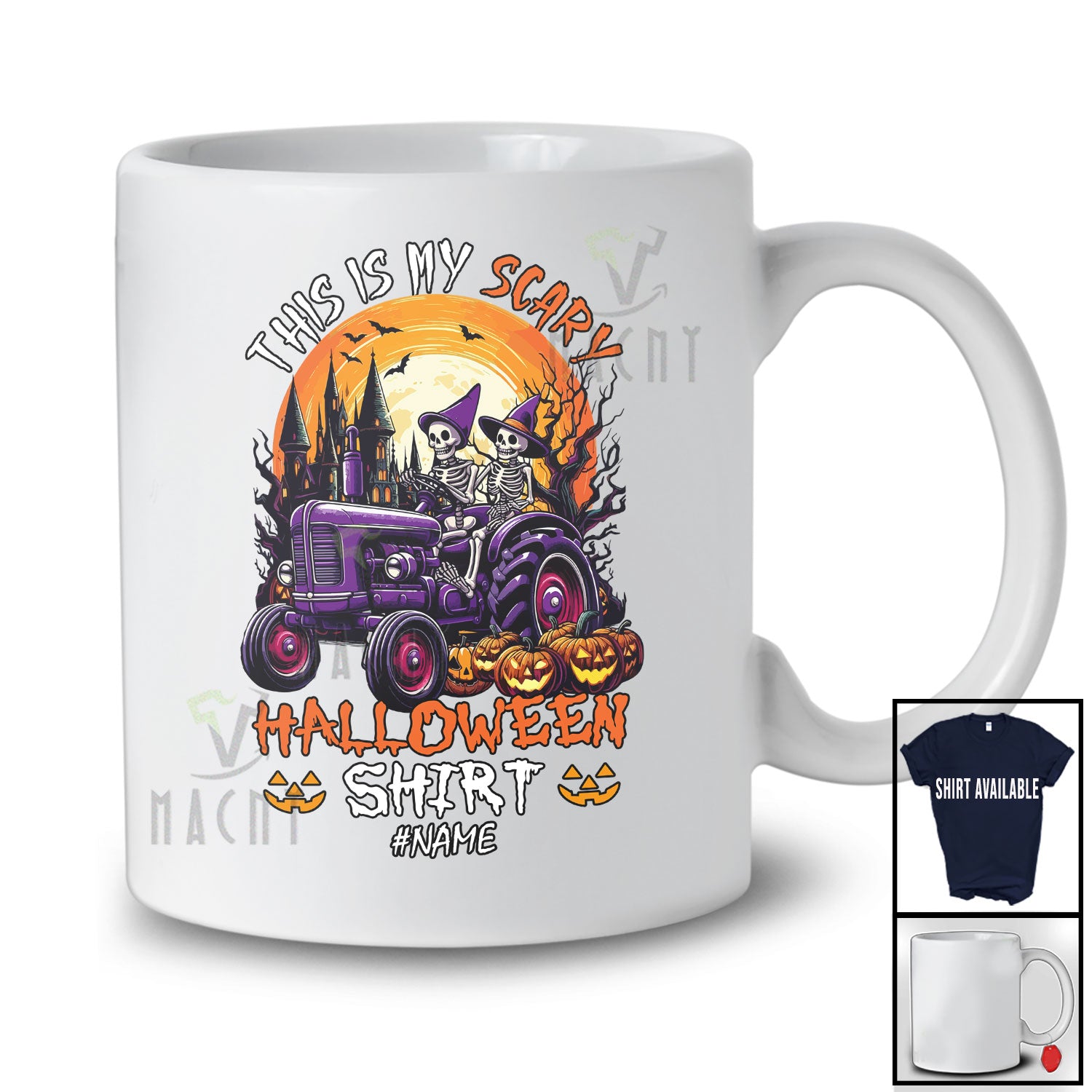 Personalized This Is My Scary Halloween Shirt; Creepy Custom Name Skeleton On Tractor Driver T-Shirt