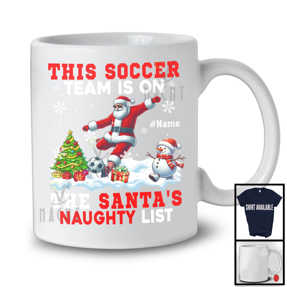 This Personalized This Soccer Team Is On The Santa's Naughty List; Joyful Custom Name Sport Player T-Shirt is great idea gift for your family, friends in this birthday, christmas, mother's day, father's day, patrick's day or any holiday.