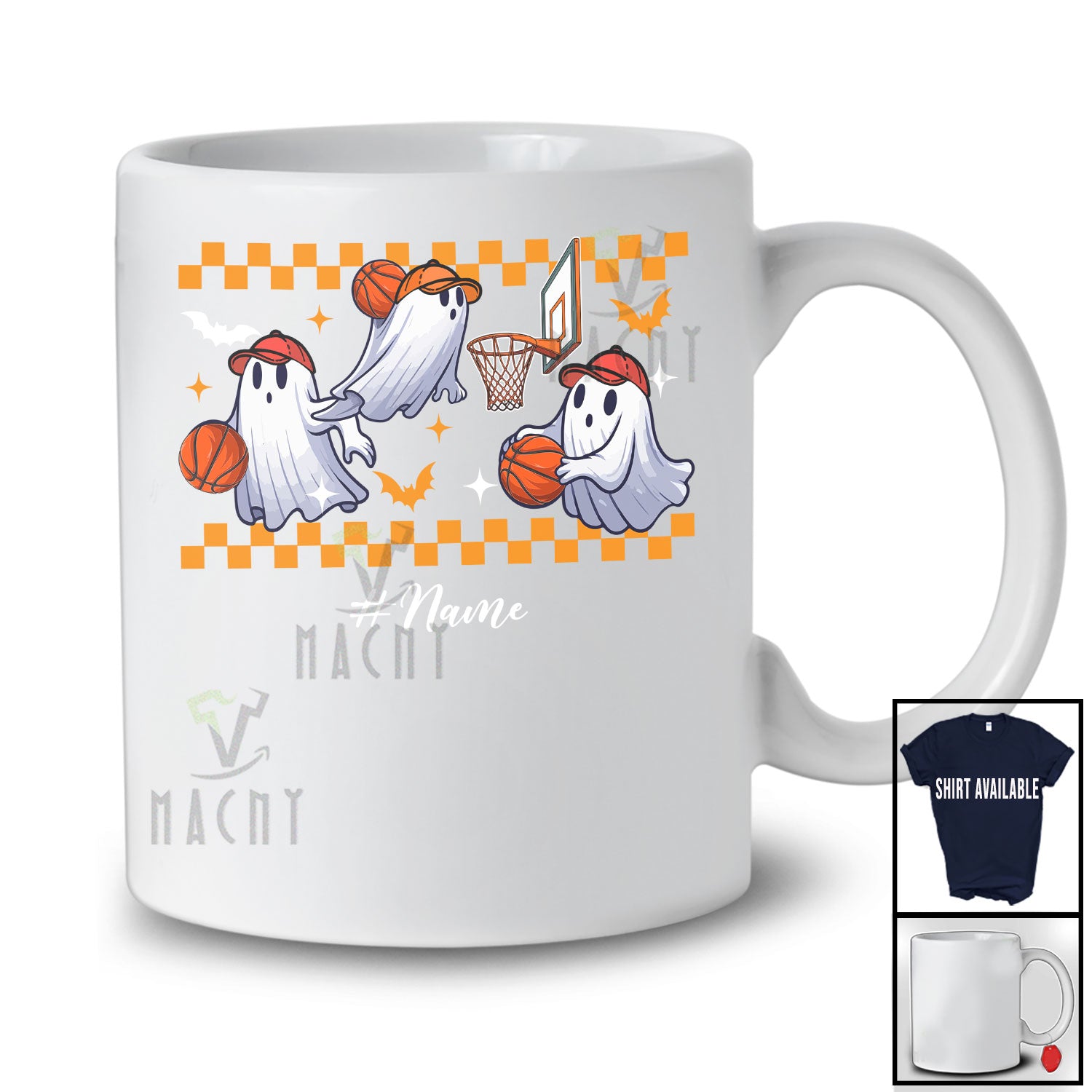 Personalized Three Boo Ghost Playing Basketball; Joyful Halloween Custom Name Sport Player Team T-Shirt
