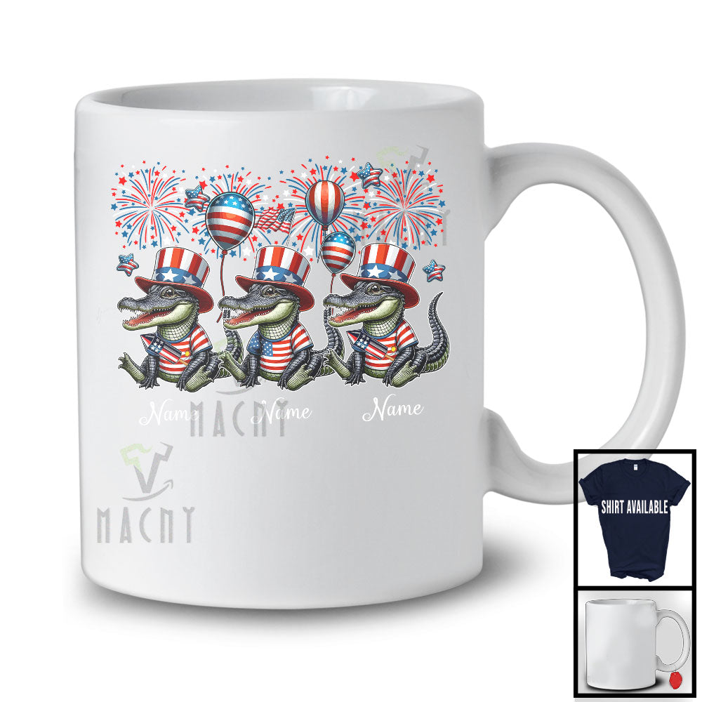 Personalized Three Custom Name Alligator, Amazing 4th Of July Wild Animal, Patriotic Group T-Shirt