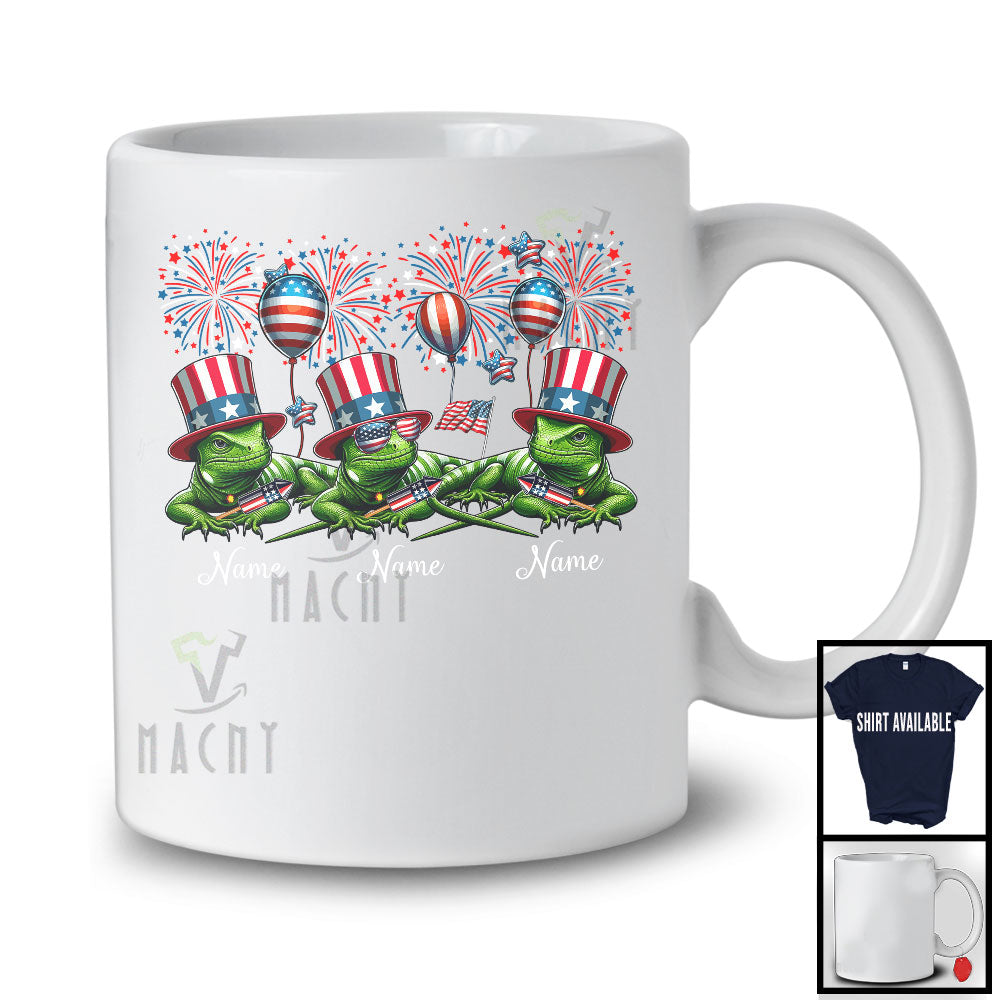 Personalized Three Custom Name Lizard, Amazing 4th Of July Wild Animal Lover, Patriotic Group T-Shirt
