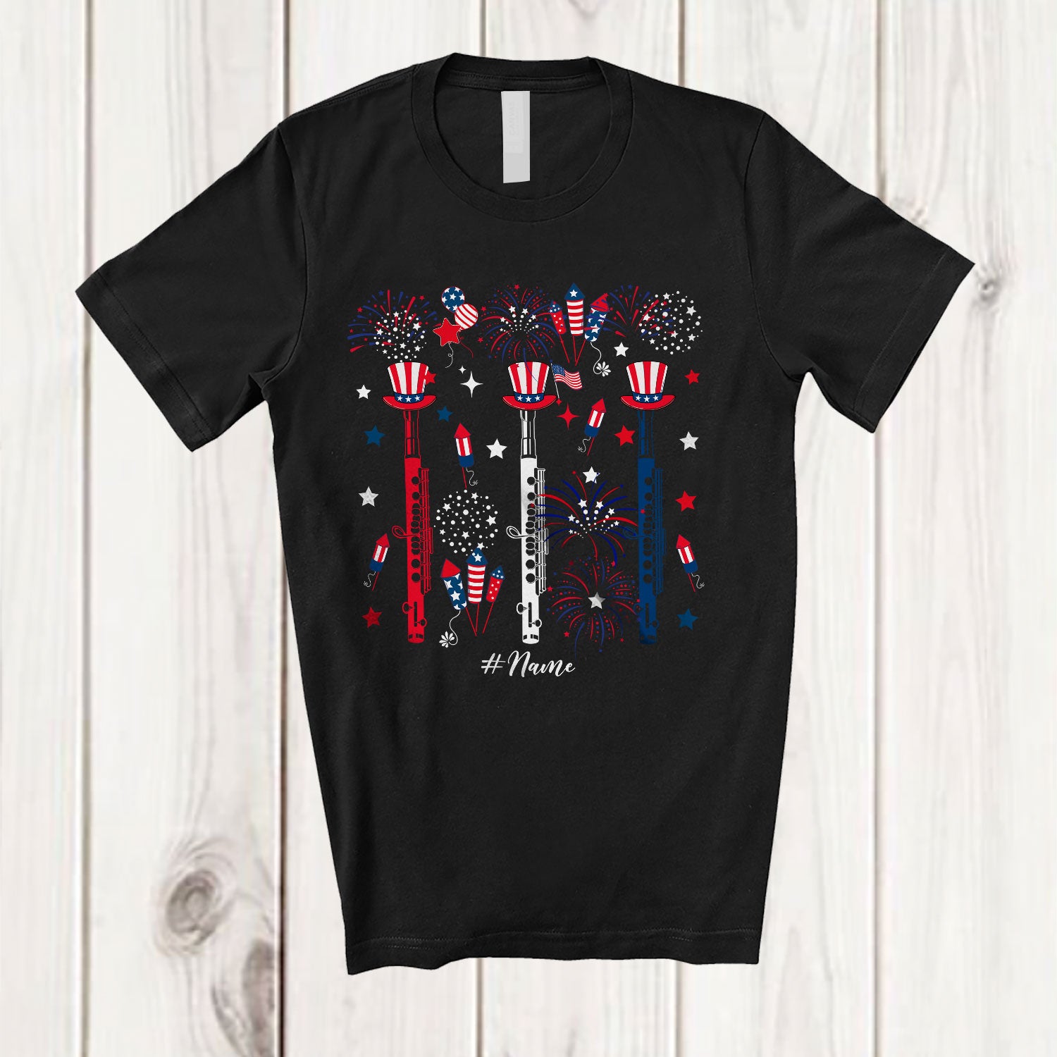 Personalized Three Flute Fireworks; Joyful 4th Of July Custom Name Flute Player; Music Lover T-Shirt