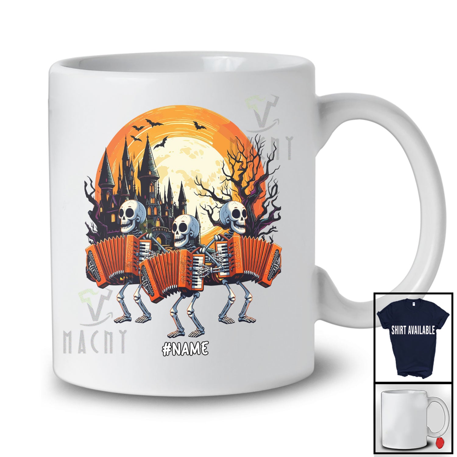 new MacnyStore - Personalized Three Skeletons Playing Accordion; Joyful Halloween Custom Name Musician; Family T-Shirt – Macnystore
