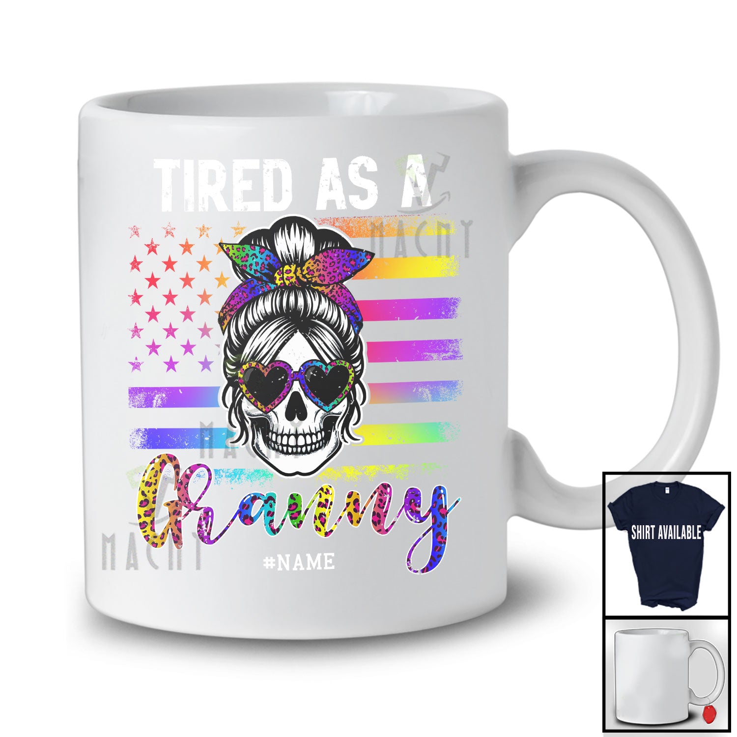 • Personalized Tired As A Granny; Joyful Mother's Day Custom Name Skull US Flag; Family T-Shirt. This cotton t-shirt is a durable staple product with a classic fit. One of the most popular items, it has a relaxed style made for everyday and casual wear.