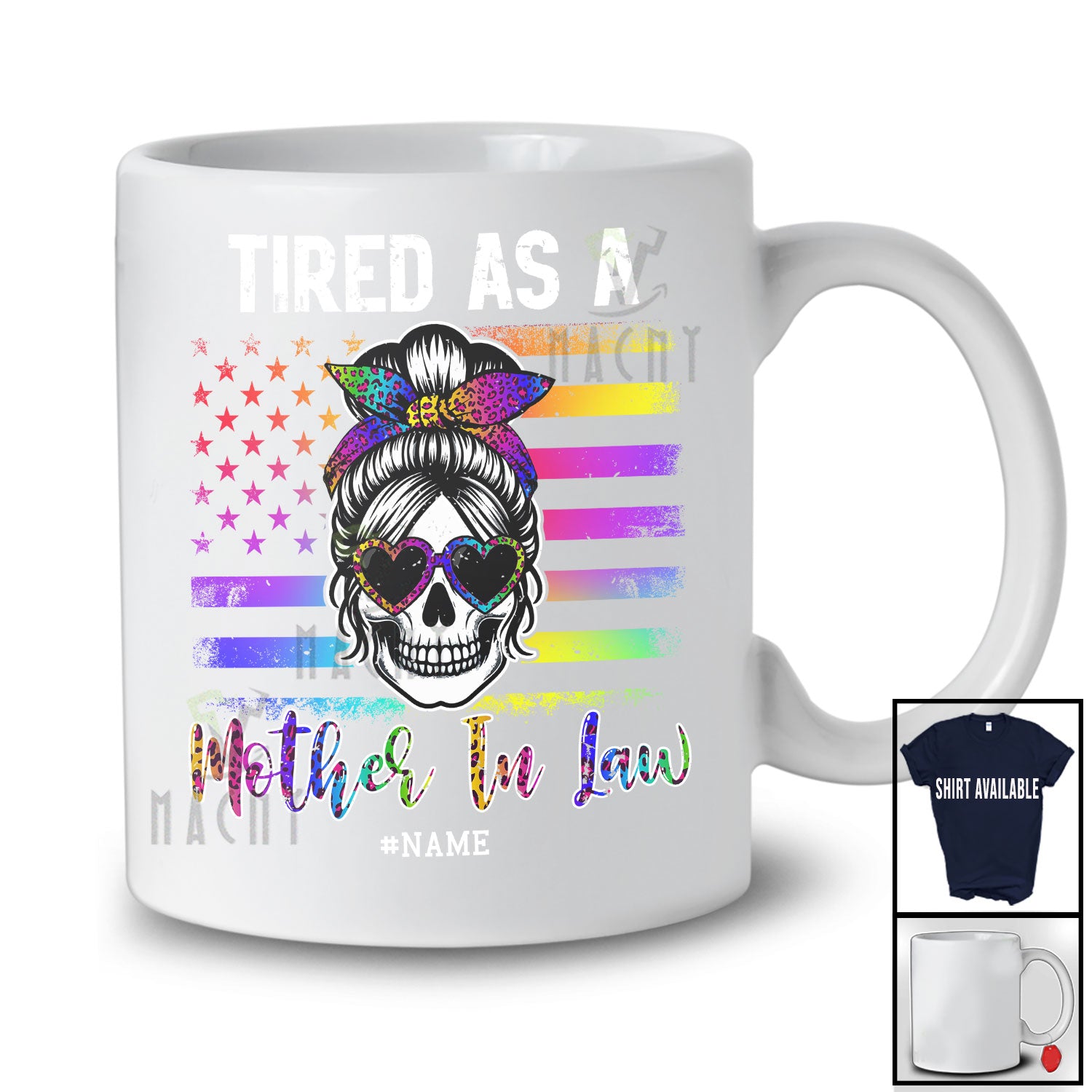 This Personalized Tired As A Mother In Law; Joyful Mother's Day Custom Name Skull US Flag; Family T-Shirt is great idea gift for your family, friends in this birthday, christmas, mother's day, father's day, patrick's day or any holiday.