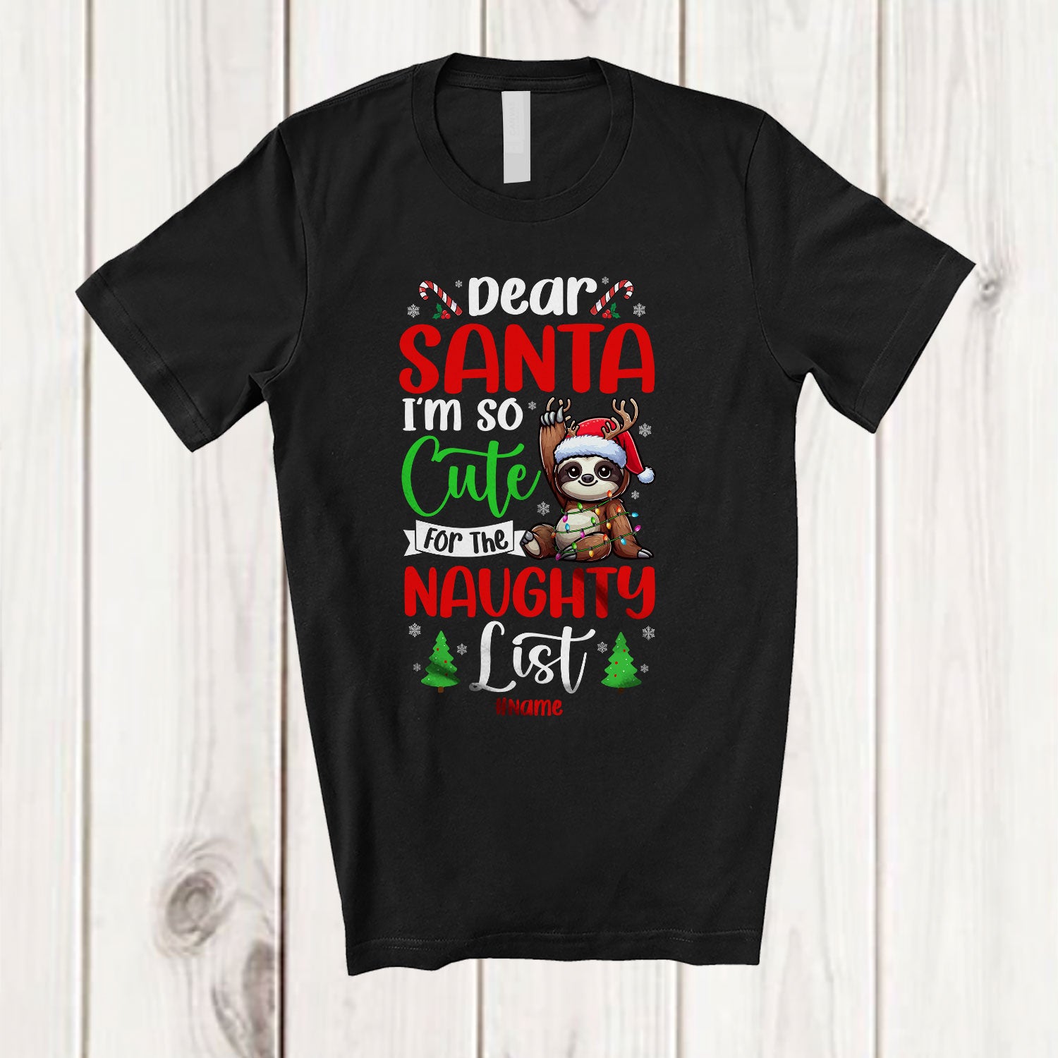 Personalized Too Cute For Santa's Naughty List; Amusing Christmas Custom Name Sloth T-Shirt