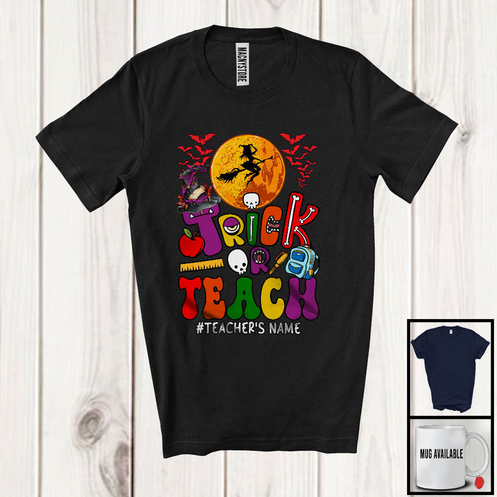 Personalized Trick Or Teach; Amazing Halloween Witch School Things; Custom Name Teacher Group T-Shirt