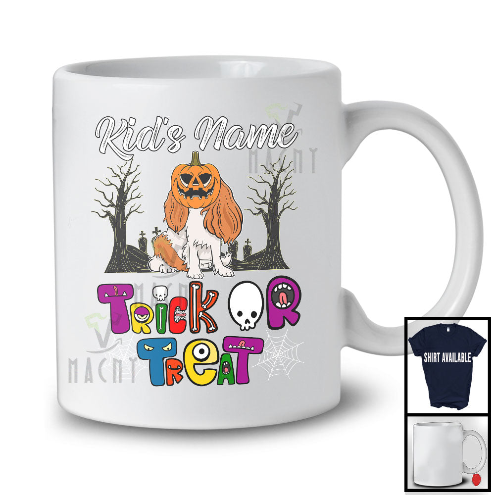 • The Personalized Trick Or Treat, Humorous Halloween King Charles Spaniel Custom Name, Pumpkin Face T-Shirt is the yin, to your yang. You've found what you're looking for.