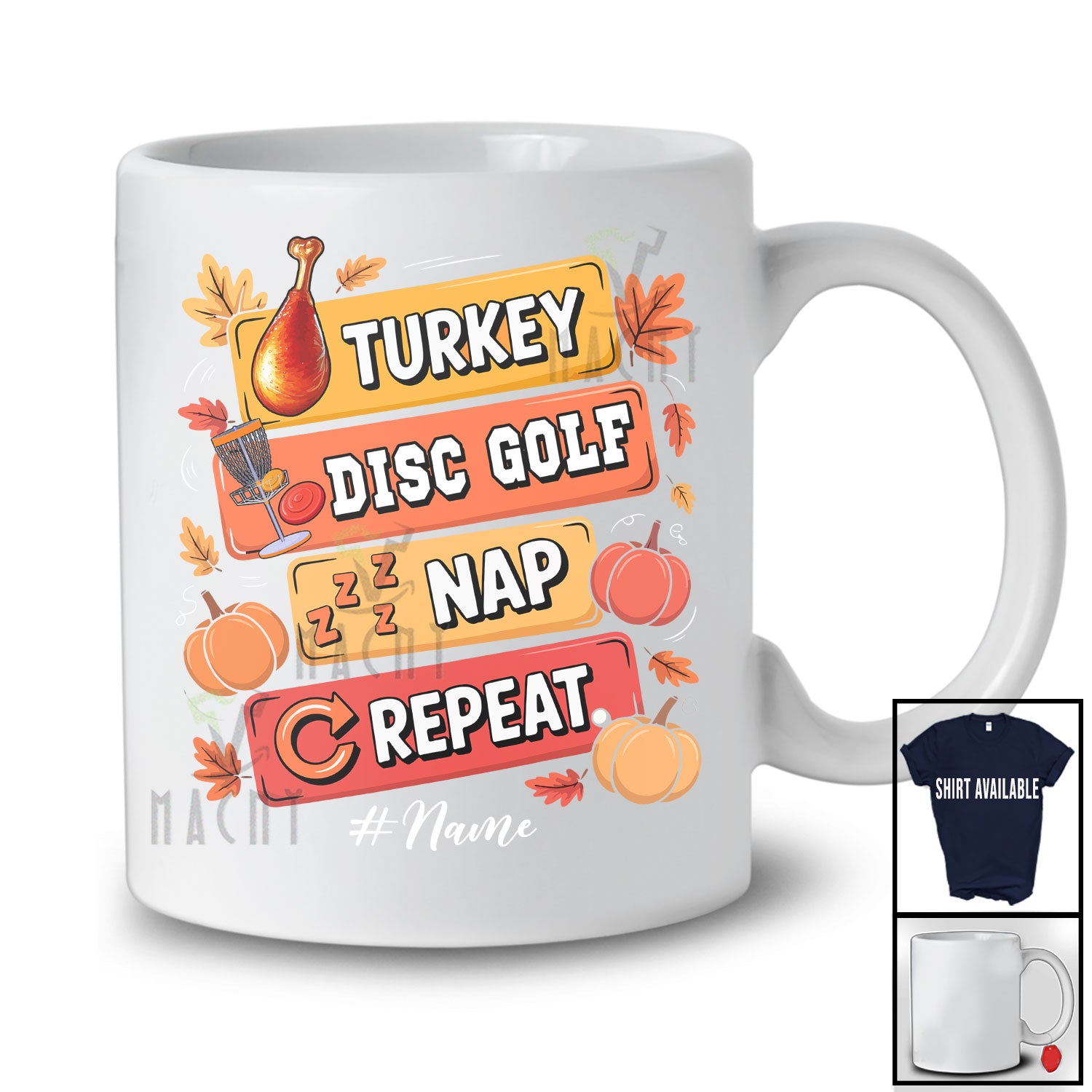 The Personalized Turkey Disc Golf Nap Repeat; Amusing Thanksgiving Custom Name Disc Golf Player T-Shirt destined to impress, and priced at only $12.95, for a limited time.