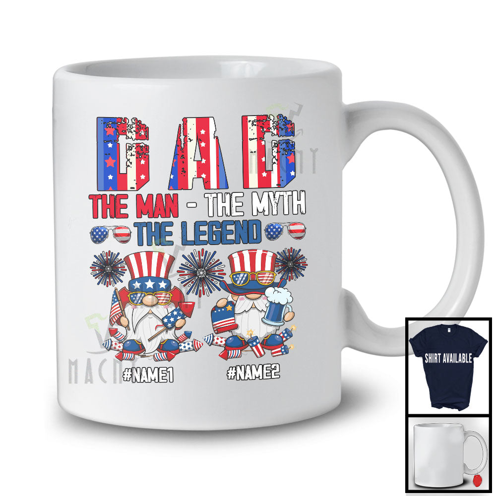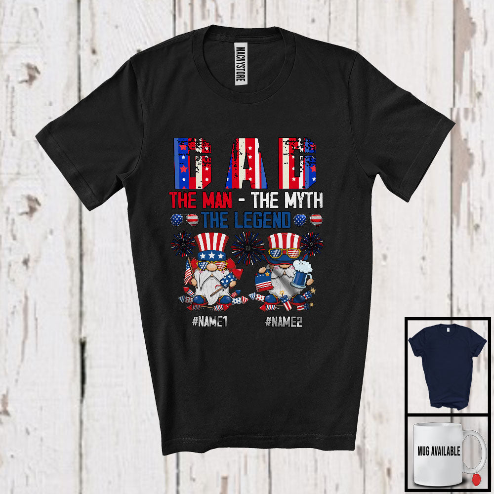 Personalized Two Gnomes Custom Name Dad Myth Legend, Proud 4th Of July Patriotic, Family T-Shirt