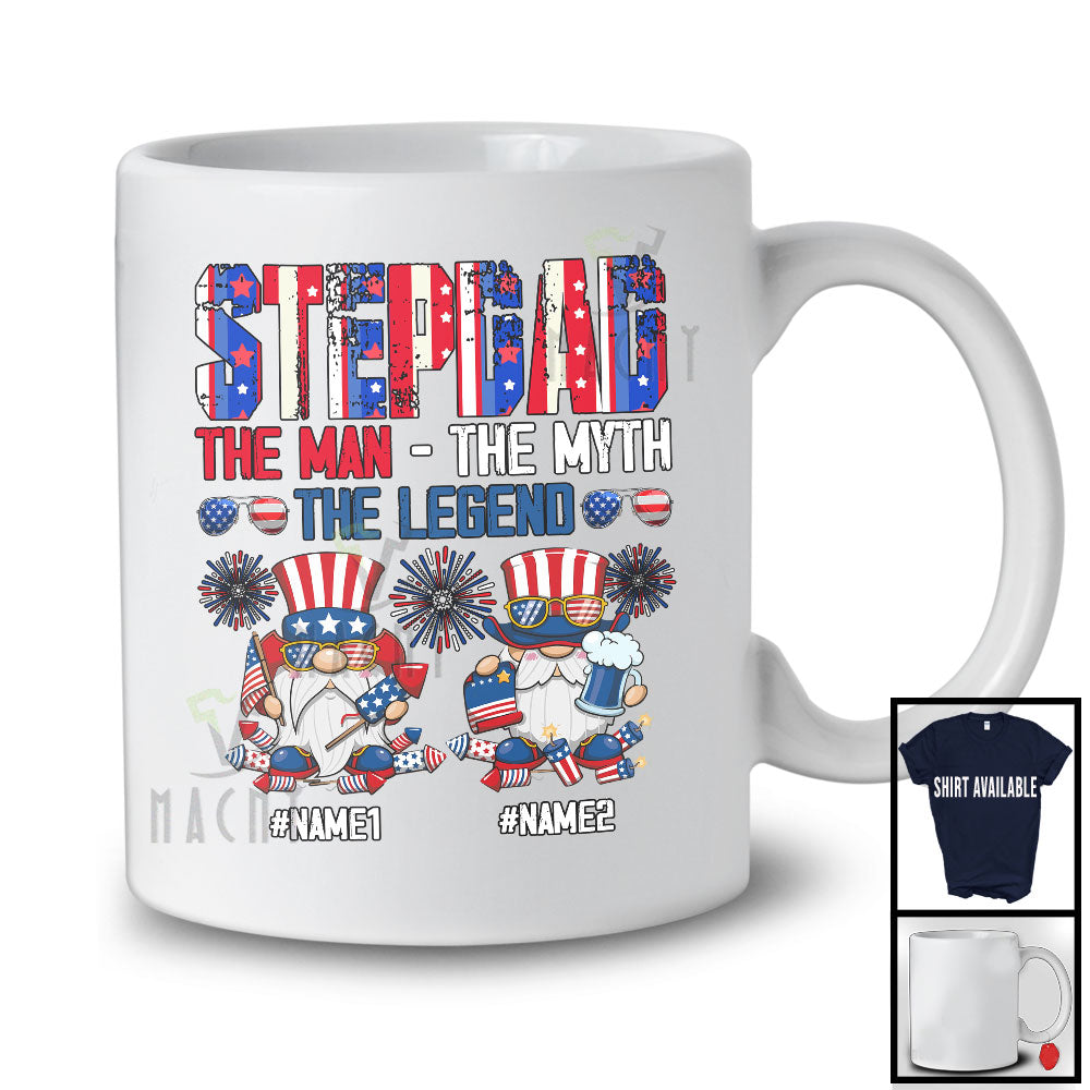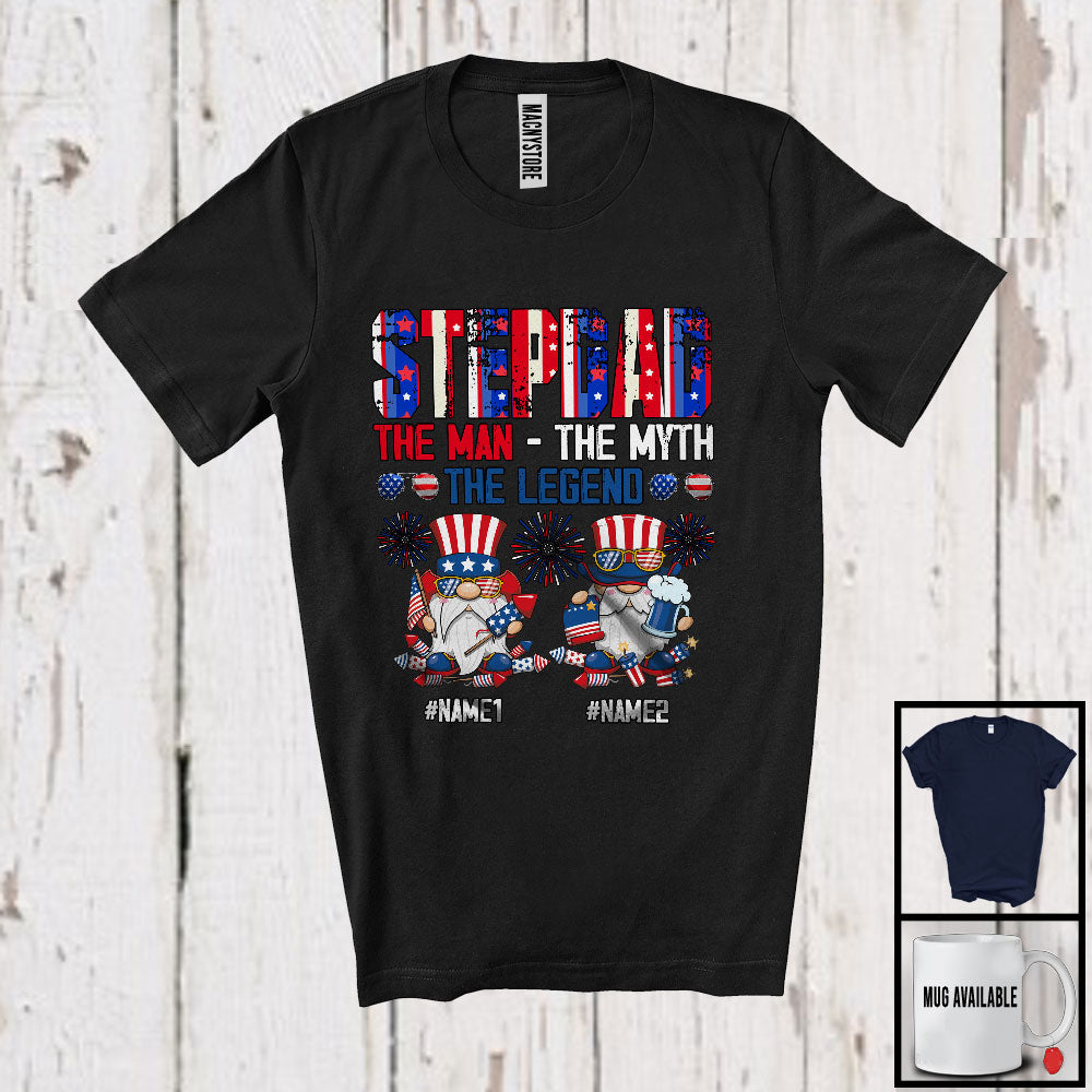 Personalized Two Gnomes Custom Name Stepdad Myth Legend, Proud 4th Of July Patriotic, Family T-Shirt