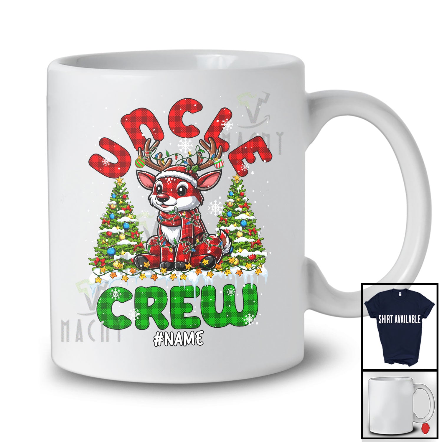 Personalized Uncle Crew; Wonderful Christmas Red Plaid Reindeer; Custom Name Family T-Shirt. This cotton t-shirt is a durable staple product with a classic fit. One of the most popular items, it has a relaxed style made for everyday and casual wear.